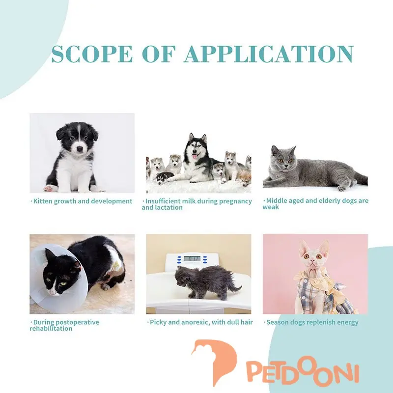 مناسب برای تمامی نژادهای سگ دارای آهن، روی، منگنز، پتاسیم و فسفر مناسب برای حیوانات دارای آلوتریوفاژی، پیکا و کم خونی بدون عوارض جانبی مناسب برای از بین بردن عادت مدفوعخواری