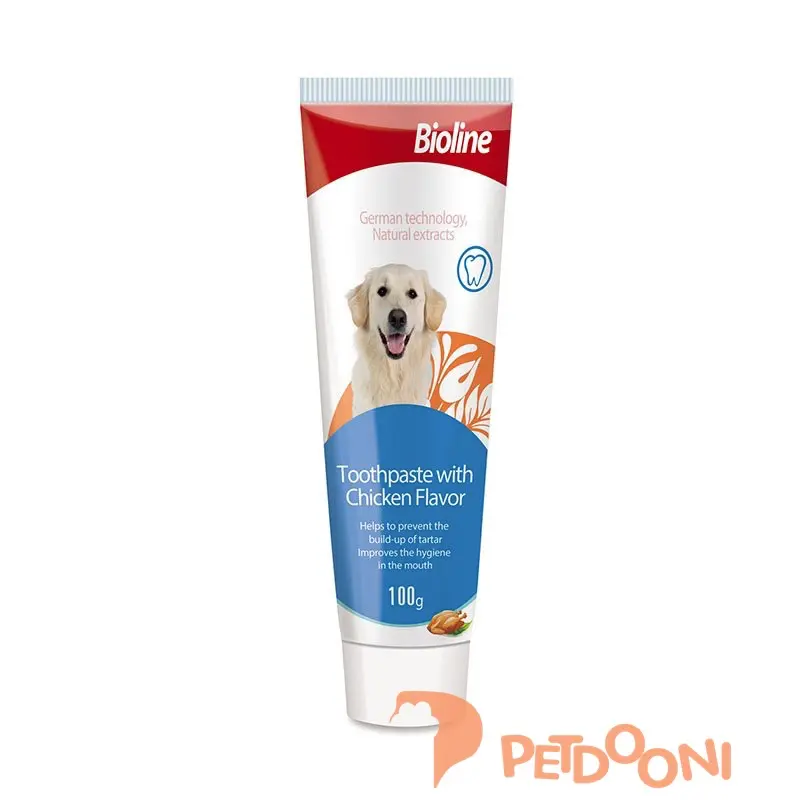 خمیر دندان سگ بایولاین با طعم مرغ (Bioline Dog Toothpaste With Chicken Flavor)، باعث افزایش سلامت دهان و دندان سگ شده و از بروز بیماریهای لثه جلوگیری میکند. استفاده از یک خمیر دندان مناسب یکی از راههای مراقبت و حفظ بهداشت دهان و دندان سگ است. خمیر دندان سگ بایولاین با طعم مرغ پلاکهای دندانی، باکتریها و بوی بد دهان سگ را از بین میبرد. این محصول از ترکیبات کاملاً طبیعی تولید شده است و خوردن آن ضرری برای سگها ندارد. استفاده از این خمیر دندان باعث میشود پت برای مدت طولانی، نفسی تازه و خوشبو داشته باشد؛ همچنین از پوسیدگی و ایجاد جرمهای دندانی جلوگیری میکند. استفادهی مداوم از این محصول، لثههای پت را سفت و محکم میکند و حساسیتهای دهانی را کاهش میدهد. در فرمولاسیون آن از کلسیم استفاده شده است که سبب افزایش استحکام و مقاومت دندانها میشود. طعم گوشت مرغ بسیار مورد علاقه سگها است و برای سگهایی که به تازگی مسواک زدن را تجربه میکنند، انتخاب بسیار مناسبی است. خمیر دندان سگ بایولاین از مواد اولیه طبیعی تهیه شده است. به همین دلیل با اطمینان میتوانید از آن برای سگ ها در سنین مختلف استفاده کنید.