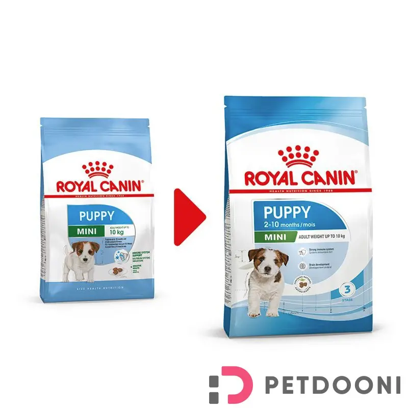 یک غذای خشک خوشمزه برای توله سگهای نژاد کوچک و سگهای جوان تا وزن 10 کیلوگرم غذای خشک توله سگ رویال کنین مدل Mini Puppy حاوی یک مجموعه مواد مغذی با ویتامینهای ضروری E و C است. این غذا میتواند به تقویت سیستم ایمنی قوی و ایمنی طبیعی کمک کند. محتوای انرژی بالای این غذا برای رشد سریع تولههای نژاد کوچک طراحی شده است و نیاز به انرژی را افزایش میدهد. محتوای کالری مناسب به کاهش خطر ابتلا به اضافه وزن کمک میکند. دانه این غذا به طور ویژه برای فک توله سگهای نژاد کوچک ساخته شده است. اثر مسواک زدن مکانیکی ناشی از جویدن دانهها به حفظ بهداشت دندان توله سگ شما کمک میکند.