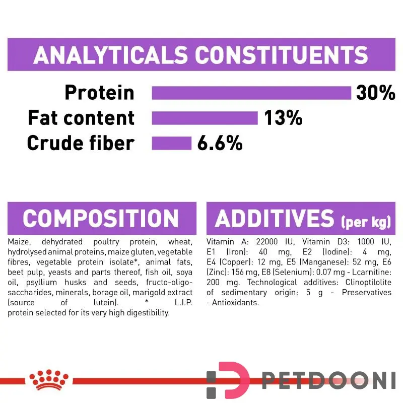 پس از عقیمسازی، سگهای نژاد کوچک مستعد اضافهوزن هستند. این غذا با ترکیب متعادل پروتئینهای با کیفیت بالا و چربی کنترلشده، به حفظ وزن ایدهآل کمک میکند. وجود فیبر کافی نیز باعث ایجاد حس سیری طولانیتر شده و از پرخوری جلوگیری میکند.