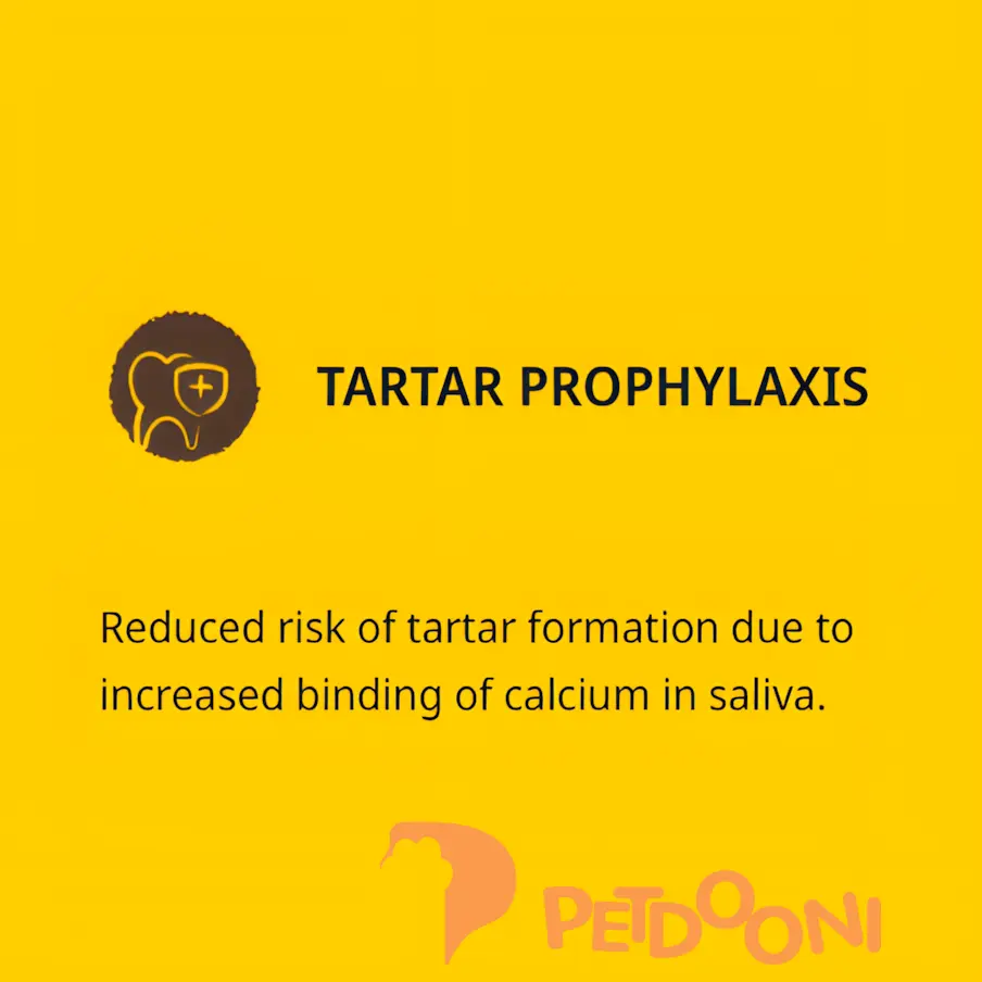 فرمول ویژه غذا باعث اتصال کلسیم در بزاق شده و از تشکیل پلاک و جرم دندان در گربه جلوگیری میکند.