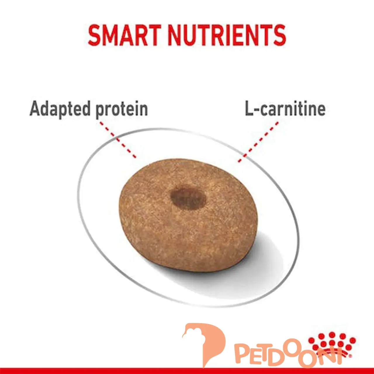 غذای خشک Royal Canin Mini Light Weight Care, برای سگهای بالغ نژاد کوچک مستعد افزایش وزن طراحی شده است.این غذا غنی از پروتئین (30٪) مناسب برای حفظ، ترویج و توسعه عضلانی و ماهیچهای است. محتوای کم چرب (11٪) و کاهش کالری 15٪ در مقایسه یک رژیم غذایی معمولی، به نگه داشتن وزن سالم سگ کمک میکند. در حالی که ال-کارنیتین اضافه شده ذخایر چربی بدن را بکار انداخته و عمل چربی سوزی را تحریک میکند. برخی نژادهای سگهای کوچک، مانند مینیاتوری مو بلند و مینیاتوری Shelties و Cavalier King Charles Spaniels و Cairn Terriers و Miniature Schnauzers، زمینه ژنتیکی چاقی و یا تمایل طبیعی به پرخوری دارند. این محصول با ایده تامین نیازهای خاص سگهای نژاد کوچک که عمدتا اضافه وزن دارند فراهم شده است.