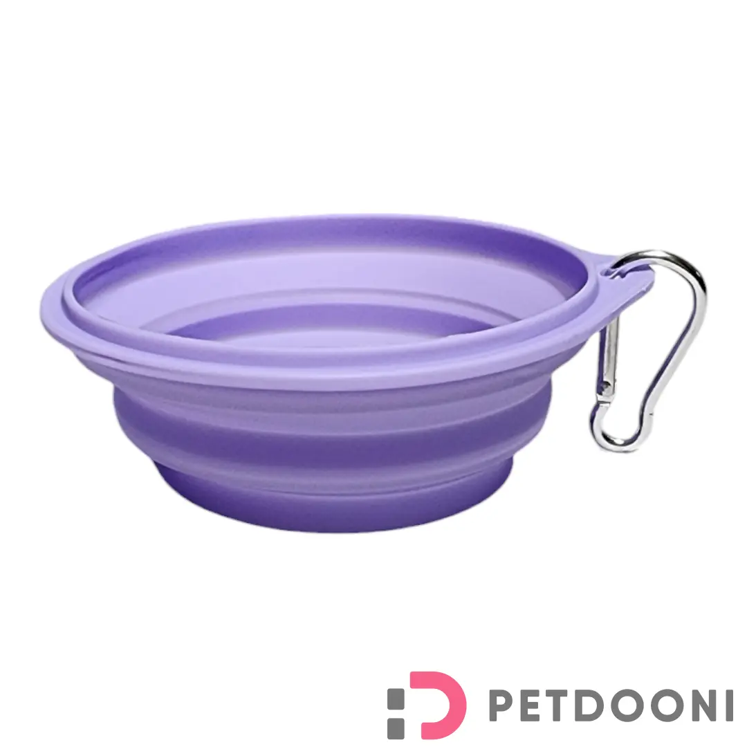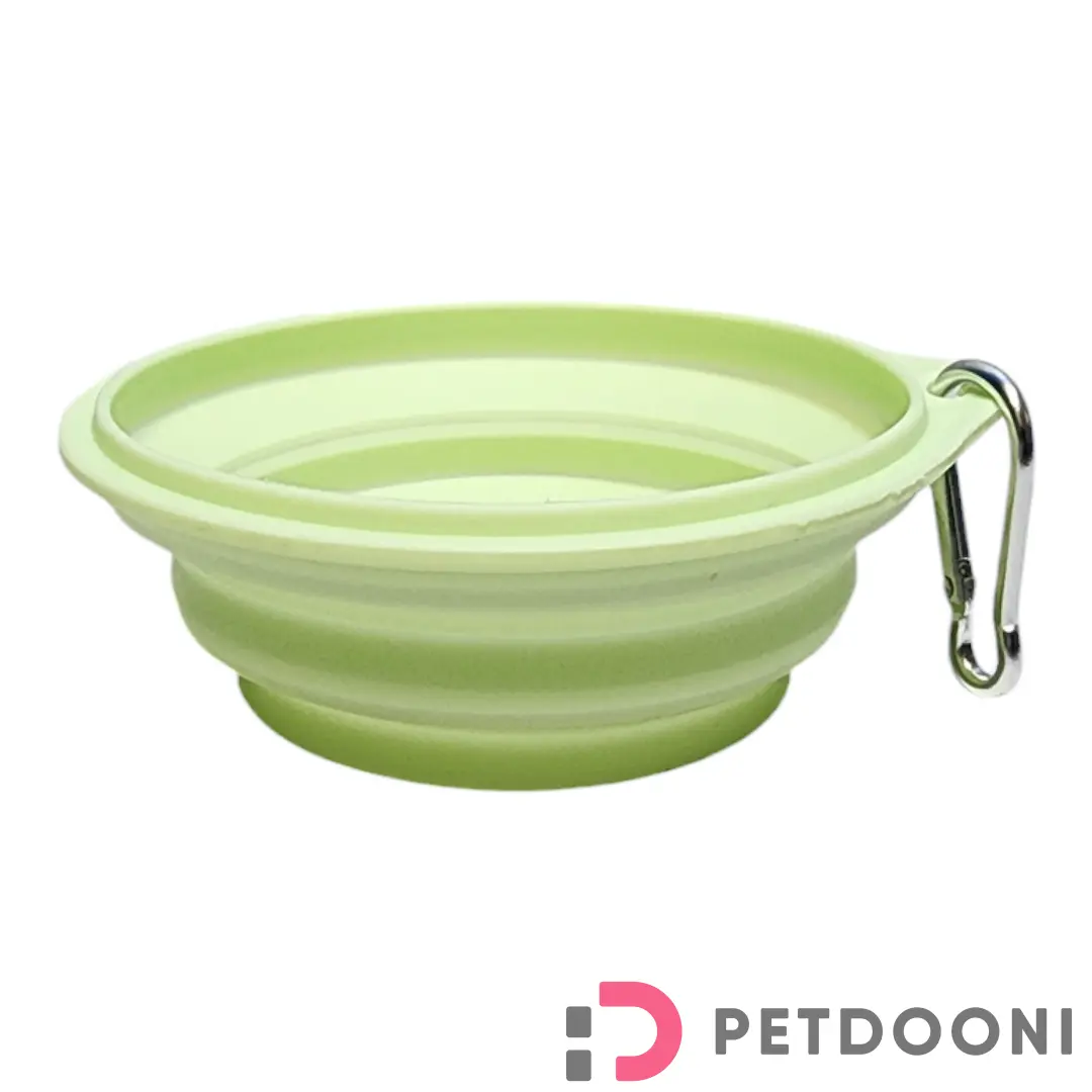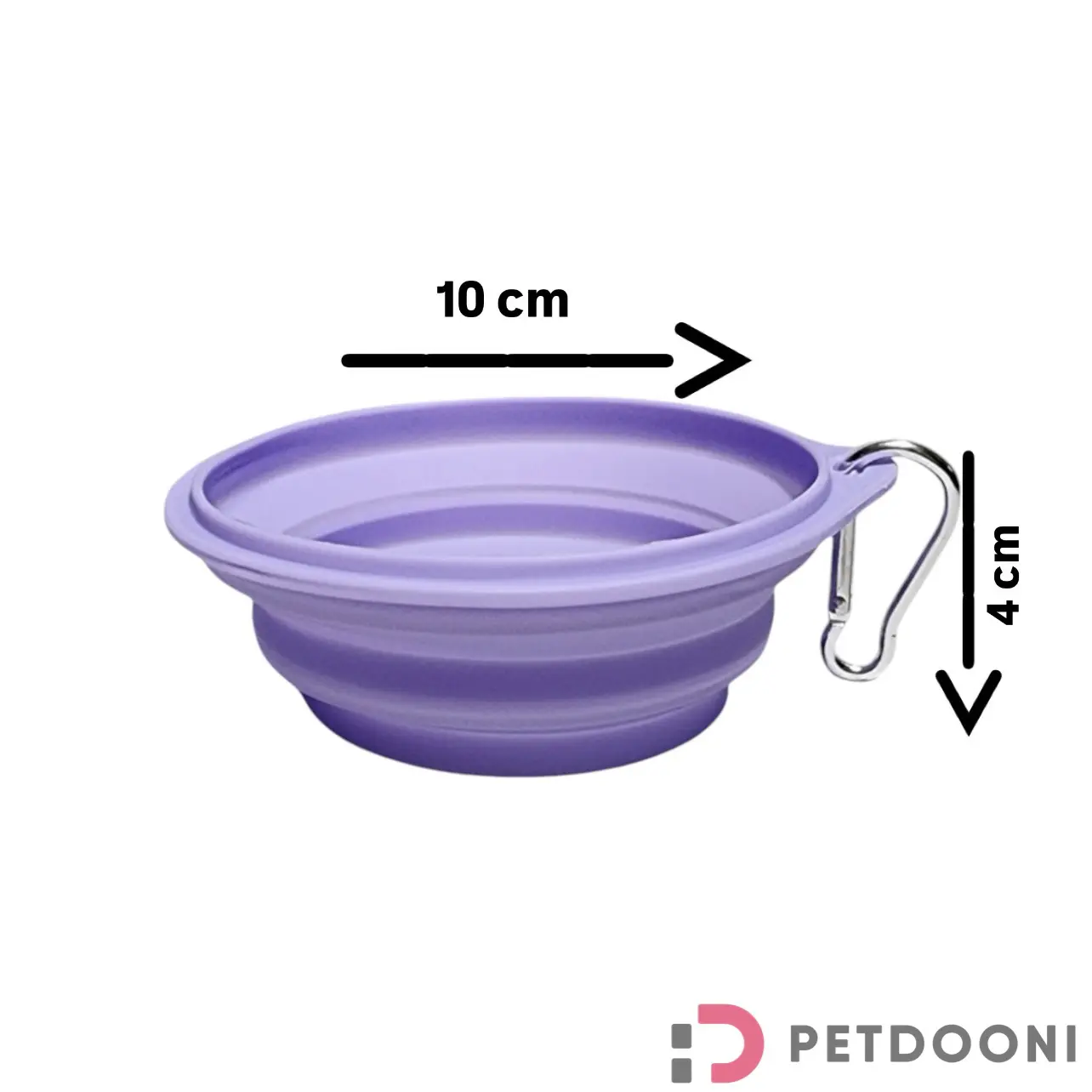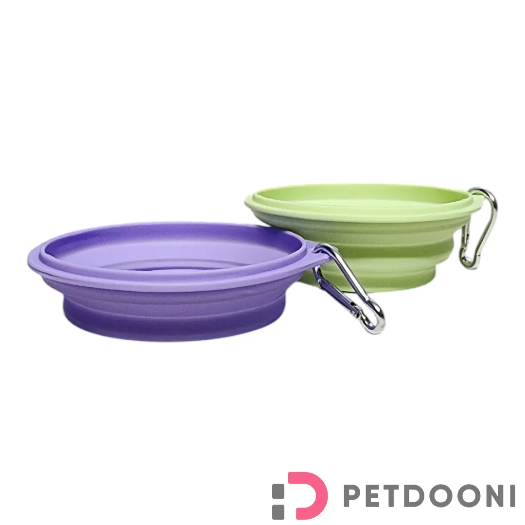 ظرف آب و غذا تاشو سگ و گربه وسیله ایی کاربردی جهت استفاده و رساندن آب و غذا به حیوان در خارج از منزل مثل پارک هستید یا در حال سفر هستید. ظرف سیلیکونی تاشو حیوانات از جنس سیلیکون با کیفیت است و به صورت آکاردئونی جمع میشود و فضای بسیار کمی را میگیرد و شما به راحتی می توانید داخل کیف خود قرار دهید. بر روی این ظرف مسافرتی یک کارابین وجود دارد که به کمک آن می توانید ظرف را به کوله و یا لباس خود متصل کنید.این ظرف بسیار سبک بوده است و به راحتی قابل استفاده در کیف های دستی است پلاستیک ظرف بسیار با کیفیت بوده است و هیچ گونه ضرری برای حیوان شما ندارد.