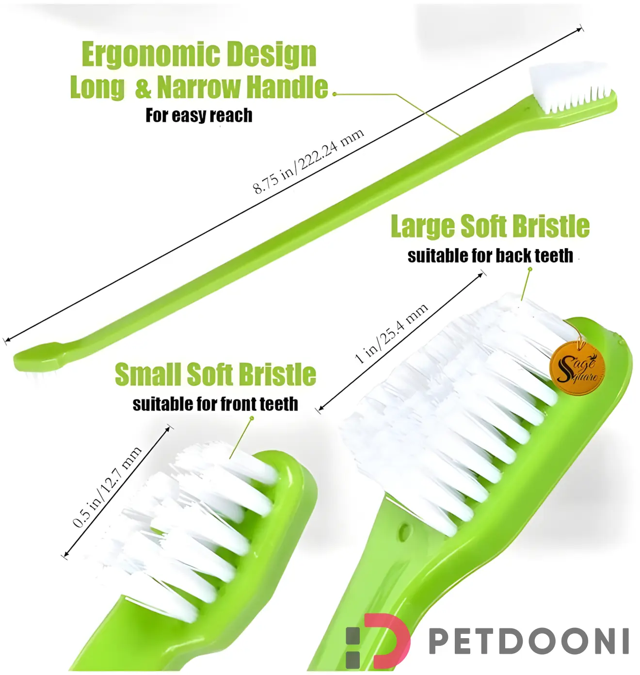 • ست شامل یک مسواک دو سر و دو عدد مسواک انگشتی • سفید کردن و درخشندگی دندانهای سگ و گربه • جلوگیری از پوسیدگی دندان، باکتری و ازبین بردن پلاک • جلوگیری از بیماریهای لثه با ماساژ مسواک