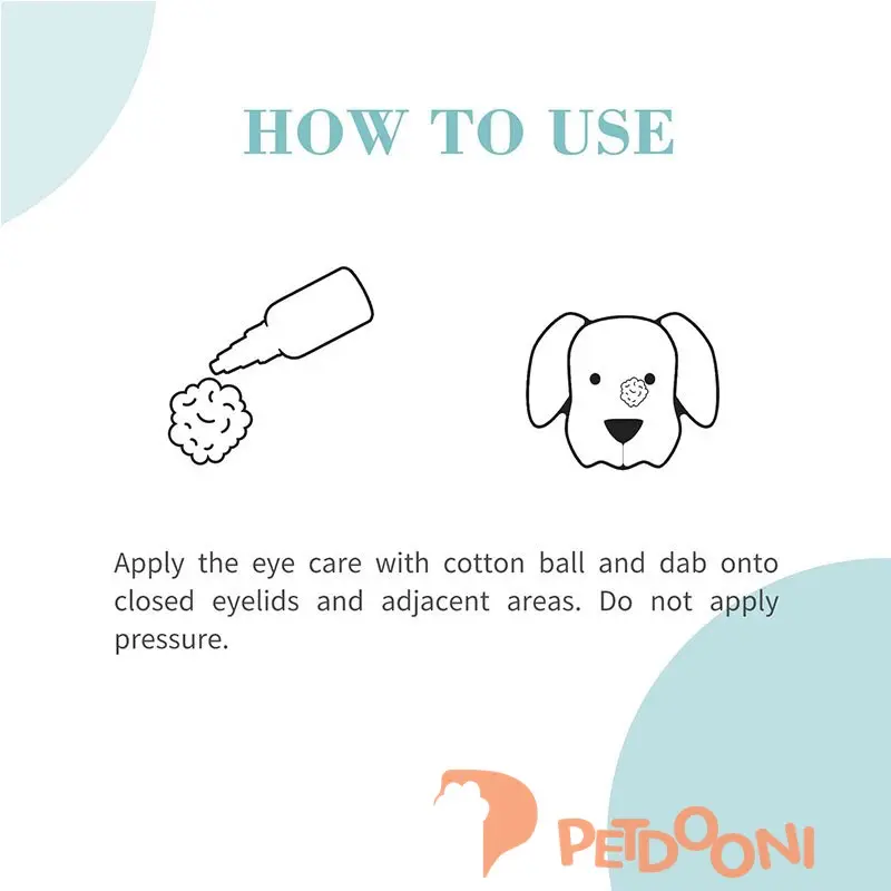 مقداری از این قطره را روی یک دستمال یا پد تمیز ریخته و سپس آن را روی اطراف چشم سگ، گربه و یا جونده خود بکشید تا بصورت کامل اطراف چشم سگ تمیز گردد.