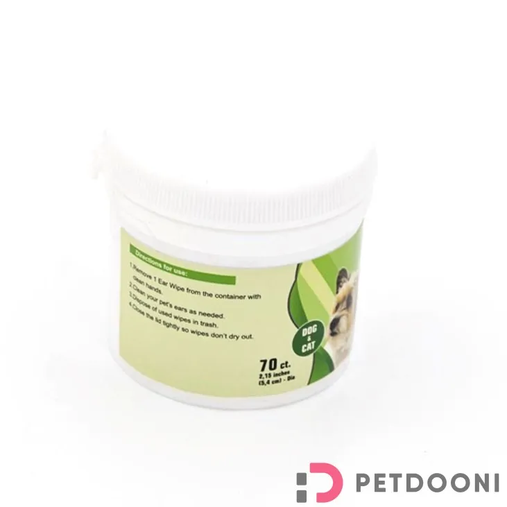 1. با دستان تمیز یک عدد دستمال را از بسته بندی خارج کنید. 2. به مقدار لازم گوش پت خود را تمیز نمائید.