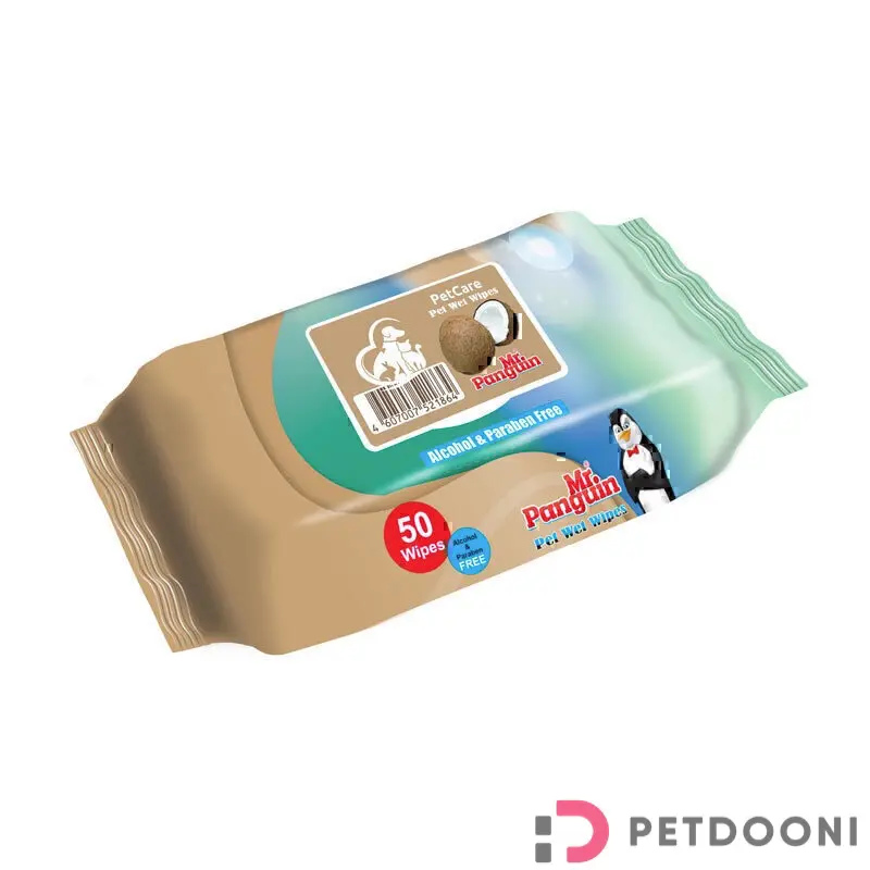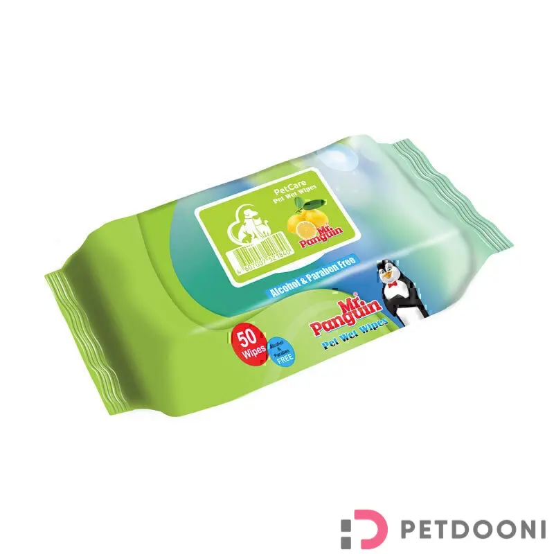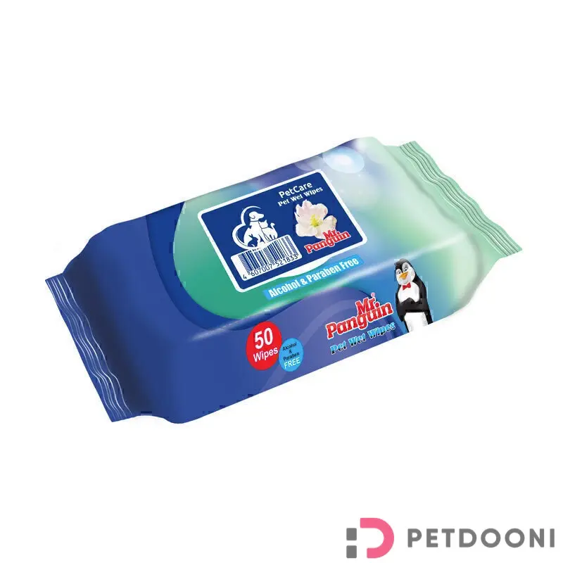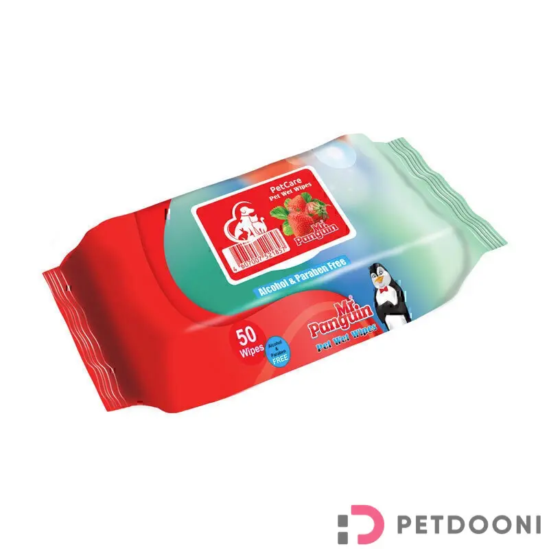 دستمال های مرطوب حاوی نرم کننده برای لطیف سازی بدن سگ و گربه هستند این دستمال از خشکی پوست حیوانات دوست داشتنی شما جلوگیری میکند. به همراه داشتن دستمال کاغذی و مرطوب برای تمیز کردن تهوع و یا اتفاقات دیگر لازم است. دستمال مرطوب پاکتی سگ و گربه مستر پنگوئن ایده آل برای نظافت سگ و گربه و حیوانات خانگی یک محصول کاملا بهداشتی مختص این گونه از حیوانات می باشد. دستمال مرطوب سگ و گربه مستر پنگوئن فاقد الکل و مواد حساسیت زا برای سگ و گربه است و به دلیل داشتن گلیسیرین و عصاره آلوئه ورا پوست سگ و گربه را لطیف و مرطوب می نماید. همچنین خاصیت آنتی باکتریال دستمال مرطوب سگ و گربه مستر پنگوئن موجب می شود آلودگی و میکروب به طور کامل از بین برود.