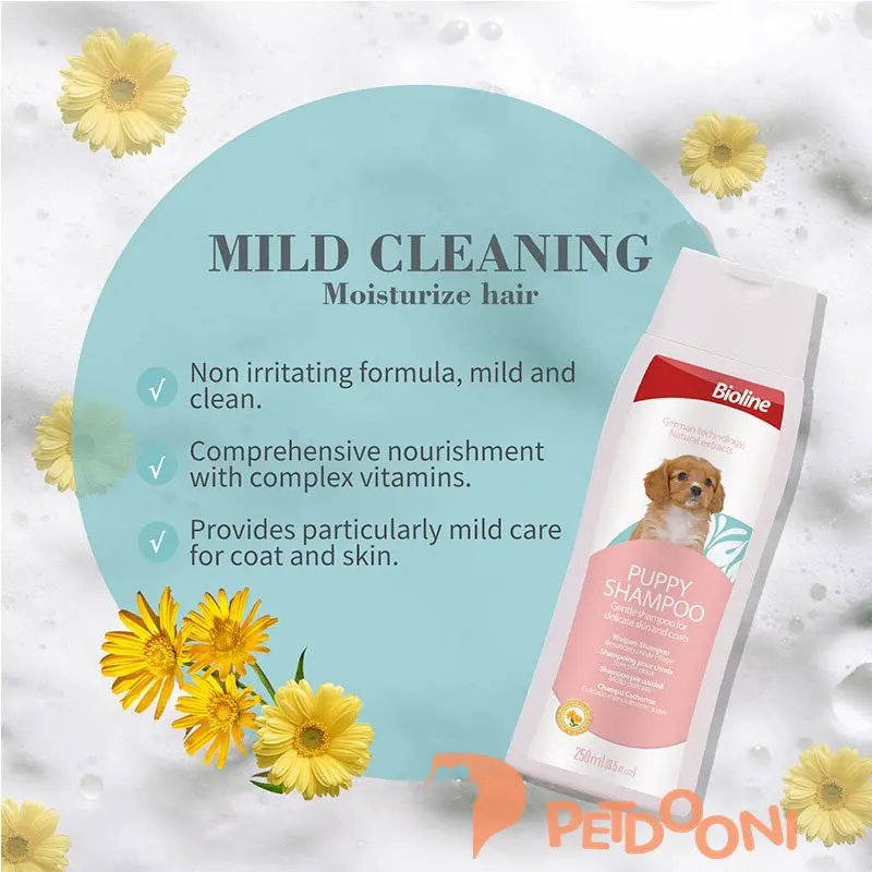 شامپو توله سگ بایولاین (Bioline Puppy Shampoo ). برای نگهداری از پت و بهداشت پوست آنها در منزل نیاز است تا مواد شوینده خالص و بدون ضرر را برای آنها انتخاب کنید. این شامپو از کیفیت بسیار بالایی برخوردار است و موجب تقویت ریشه مو میگردد که با تقویت ریشه مو، ریزش آن نیز کاهش مییابد. ناگفته نماند که مصرف این شامپو سبب رفع خارش پوستی شده و باعث میشود که موهای سگ همیشه رطوبت طبیعی خود را حفظ کند که در نتیجه مانع از خشکی پوست و مو میشود. این محصول حاوی عناصری است که بوی نامطبوع و بد بدن پت را از بین می برد. در ساخت این شوینده از مواد اولیه مرغوب استفاده شده است تا میزان حساسیت به صفر برسد.