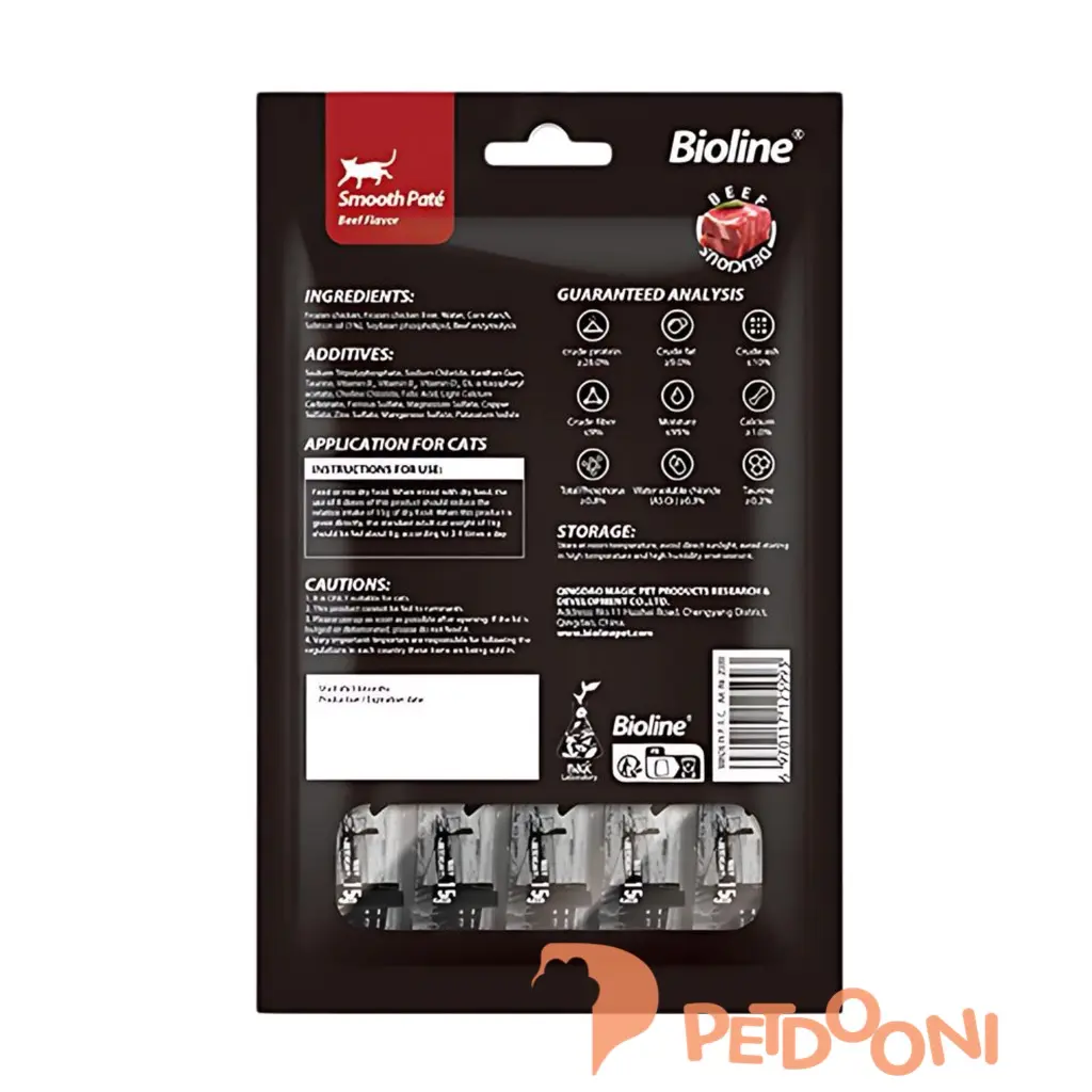 بستنی گربه بایولاین با طعم گوشت در بستههای تکنفره 15 گرمی عرضه میشود که باز کردن و مصرف آن بسیار راحت و بدون نیاز به ابزار خاصی است.