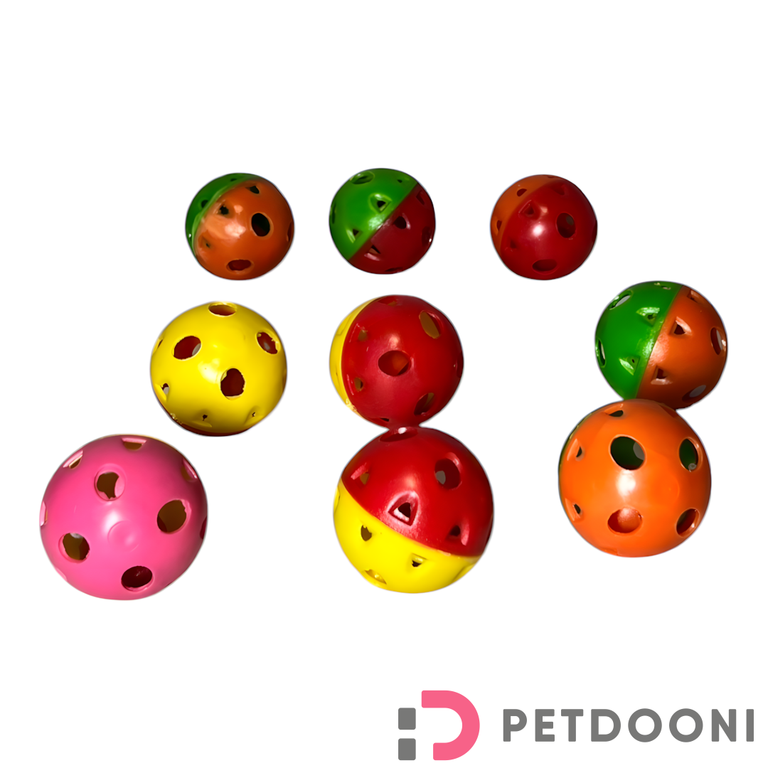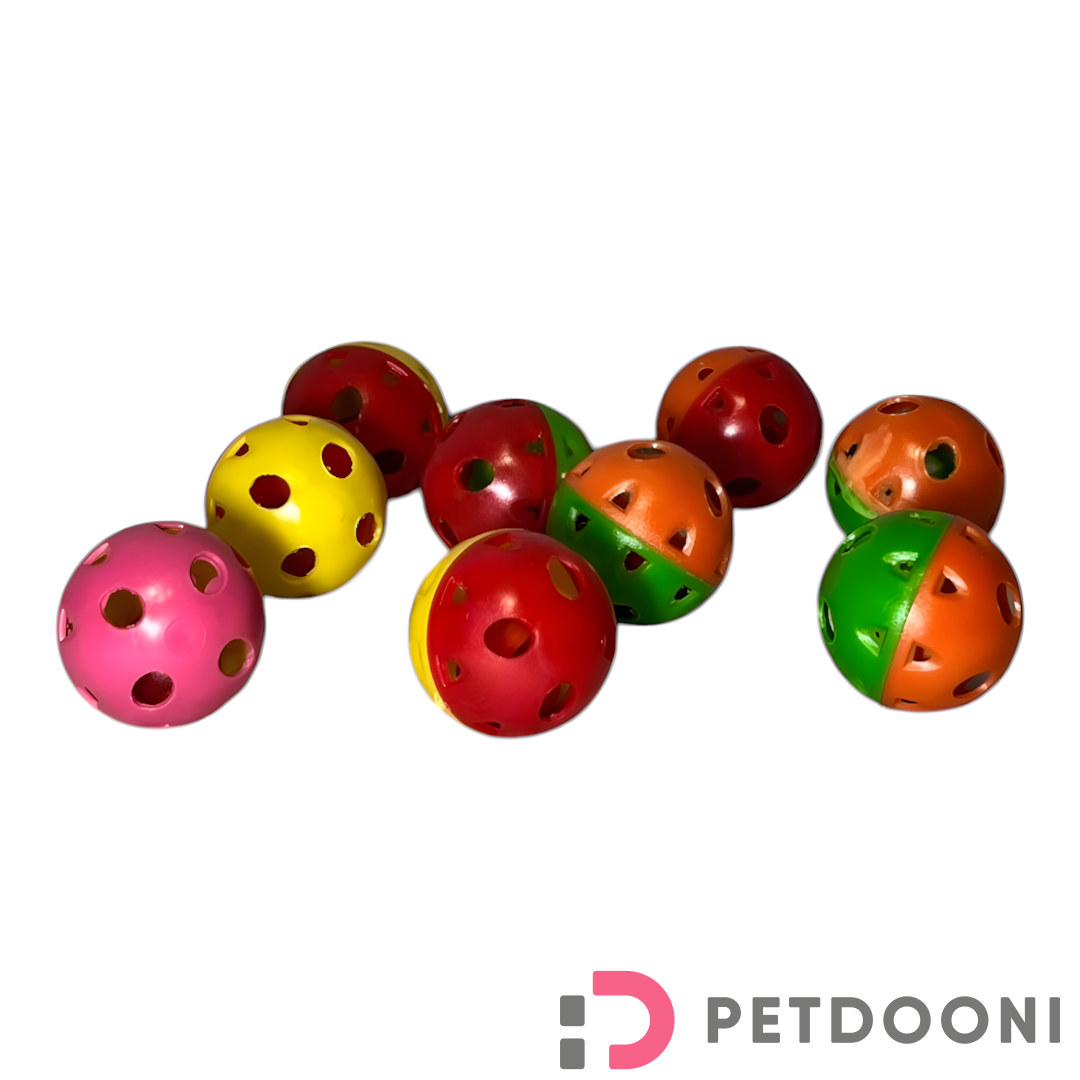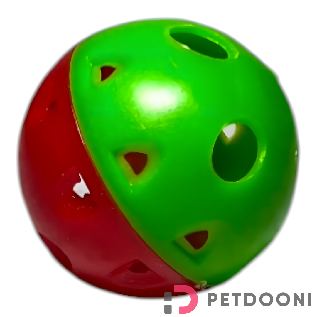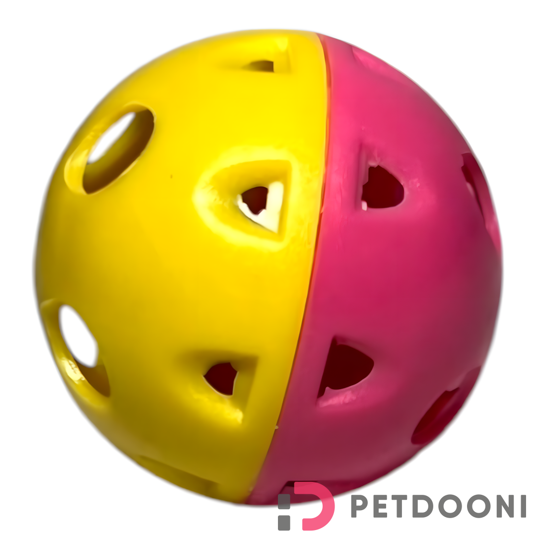 • ساخته شده از پلاستیک فشرده با رنگ های شاد و روشن • دارای زنگوله وسط توپ • قطر توپ 4 سانتیمتر