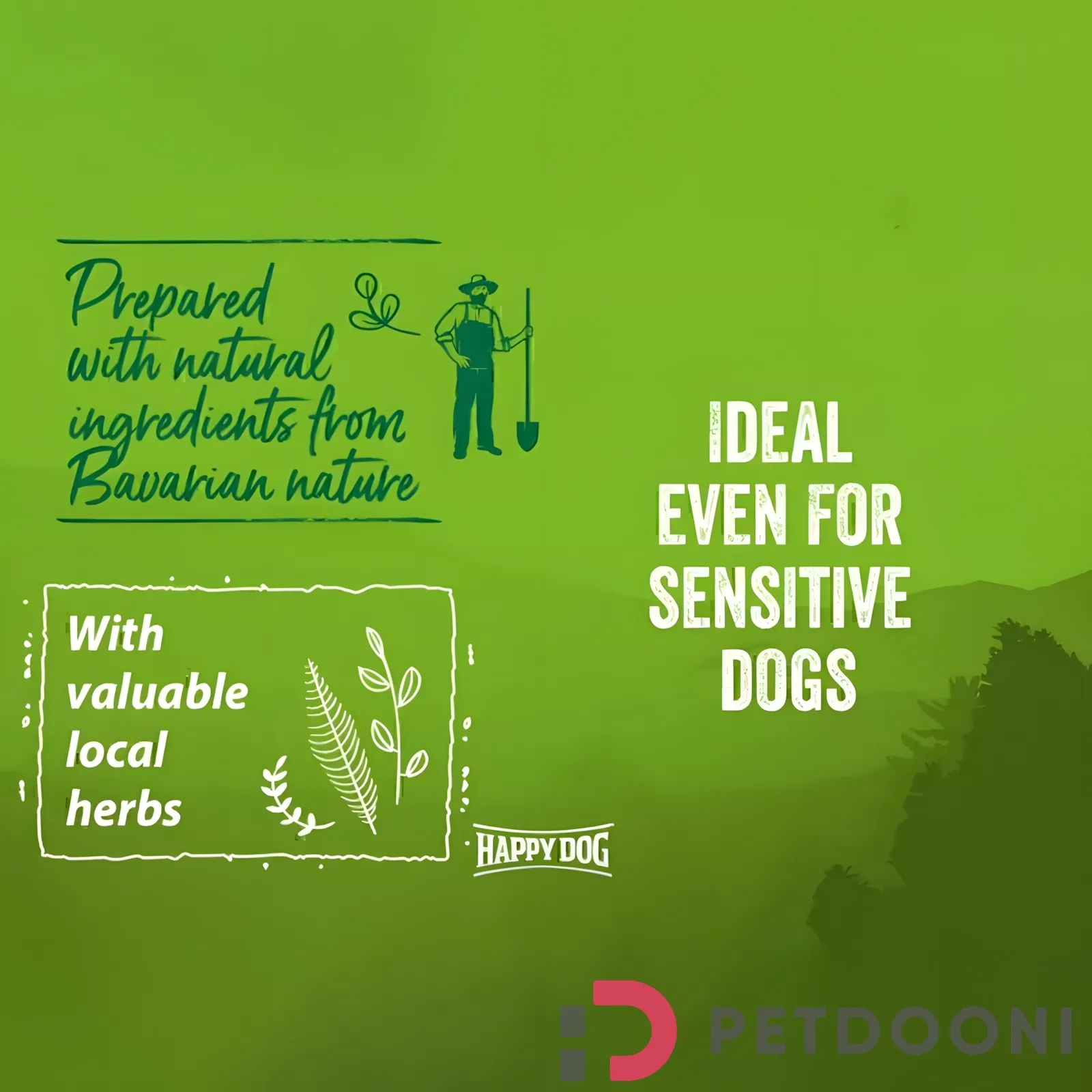 غذای خشک سگ بالغ هپی داگ با طعم گوشت بره و برنج محصولی ایده آل برای سگ هایی با دستگاه گوارش حساس است. فاقد قند و گلوتن است. سیستم گوارشی سگ ها بسیار حساس بوده و نسبت به یک سری از مواد غذایی واکنش نشان می دهد. به همین منظور شرکت های تهیه کننده خوراک های ویژه حیوانات خانگی در فرمولاسیون محصولات خود این مسائل را نیز در نظر گرفته و از به کار گیری چنین عناصری خودداری کرده اند.