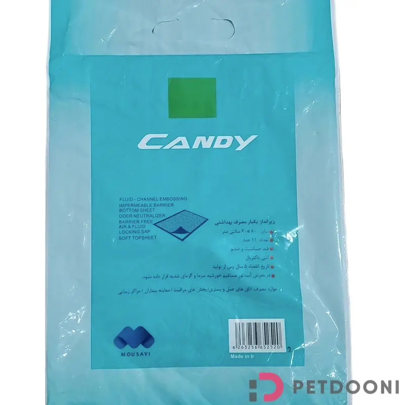 به شما در خشك و تميز نگهداشتن موثر كليه سطوح از قبيل پاركت ، سراميك ، صندلي ، تخت ، ملحفه و از اين قبيل ، اطمينان خاطر مي دهد. زیراندازهای جاذب کندی قابل استفاده در منازل، بيمارستانها ، كلينيكهاي دامپزشكي و پانسيون ها می باشد. این محصول دارای ویژگی هایی از قبیل قدرت جذب فوق العاده، آنتی باکتریال، ضد حساسیت، ضد بو، ضد نشتی و حاوی پودر SAP می باشد که امکان جذب تا 3 لیتر مایعات را فراهم میاورد. توجه فرمایید این محصول یکبار مصرف بوده و بعد از مرطوب شدن و جذب مایعات باید تعویض گردد.