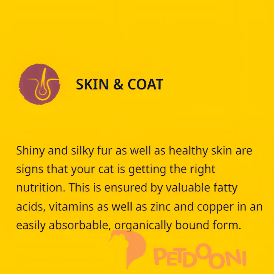 وجود اسیدهای چرب امگا ۳ و ۶ در روغن سالمون در کنار ویتامینهای B (مانند بیوتین و نیاسین)، موجب بهبود سلامت پوست، درخشندگی مو، کاهش خارش و ریزش میشود و ظاهر بچه گربه را جذابتر و سالمتر نگه میدارد.