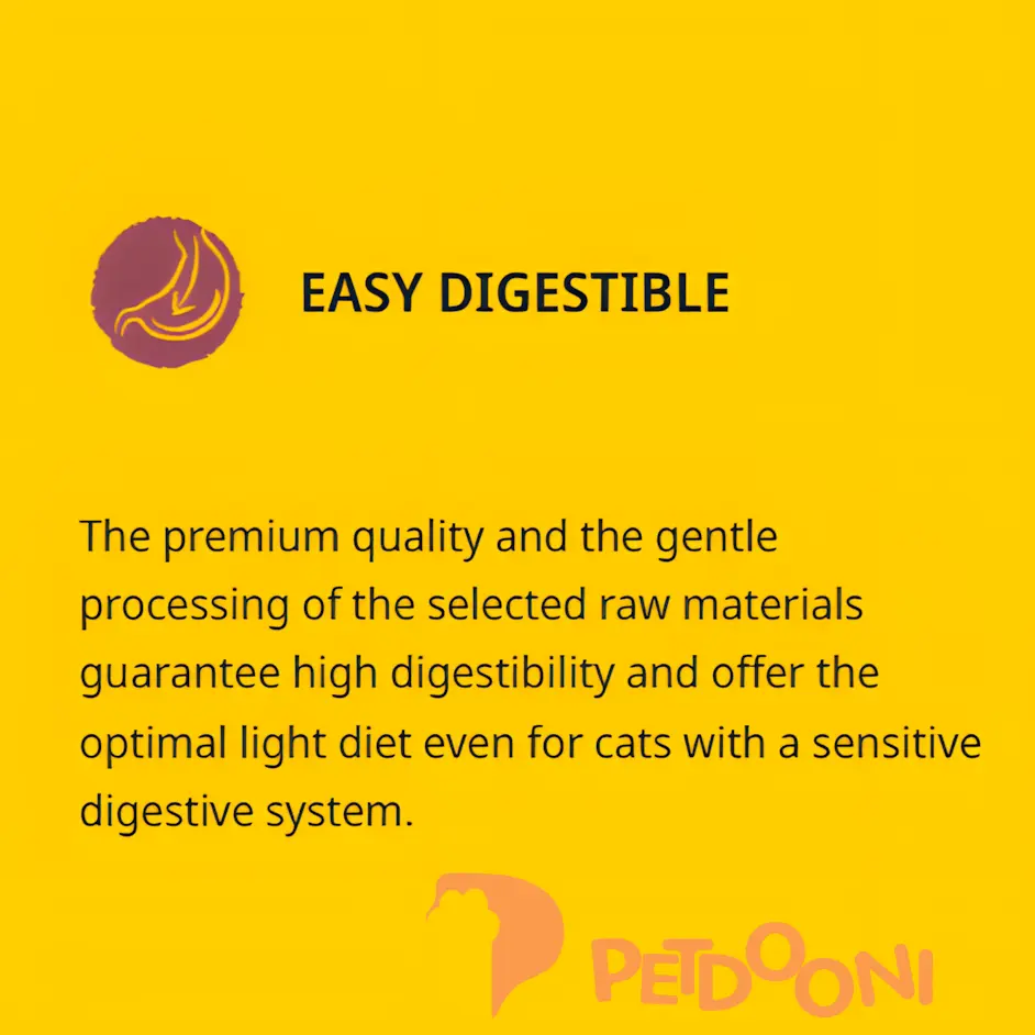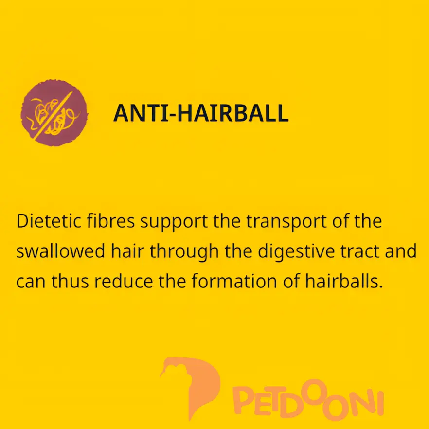 با ترکیب هوشمندانهای از فیبرهای طبیعی مثل آرد نخود و سلولز گیاهی، این غذا از تشکیل گلولههای مویی در معده جلوگیری کرده و عبور آسانتر آنها از روده را تضمین میکند. این ویژگی به کاهش استفراغ ناشی از Hairball کمک میکند.