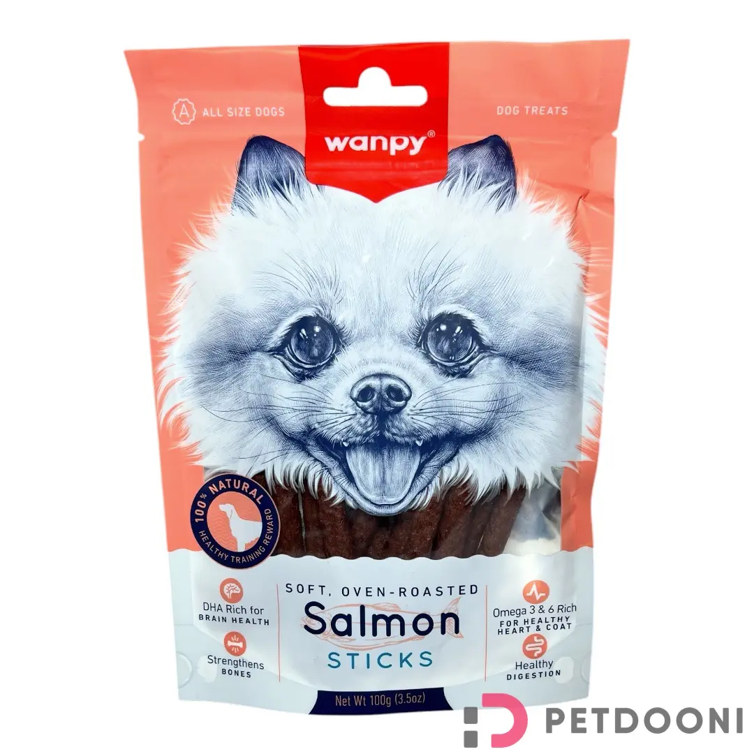 تشویقی مدادی سگ ونپی با طعم سالمون (Wanpy Salmon Sticks Dog Treat)، با طعم ماهی سالمون مزه دار شده است و یک بافت نرم دارد و میتواند به عنوان یک عامل انگیزشی برای رفتار خوب یا بعد از تمرین و تمرینات موفقیت آمیز استفاده شود. تشویقی سگ ونپی بسیار سالم بوده و با استفاده از مواد اولیه کاملا طبیعی تولید شده است. برای تولید آن از ماهی سالمون تازه استفاده شده و درصد پروتئین بالایی دارد. در عین حال، میزان چربی آن کاهش یافته و مصرف متناسب آن موجب اضافه وزن نمی شود. استفاده منظم از آن موجب تقویت استحکام استخوان ها خواهد شد. هضم آسانی دارد و فشاری به دستگاه گوارش وارد نمی کند. ساختار متراکم تشویقی ونپی به کاهش پلاکهای دندانی کمک کرده، از جویدن مخرب جلوگیری میکند، استرس، پرخاشگری و کسالت را از بین می برد.