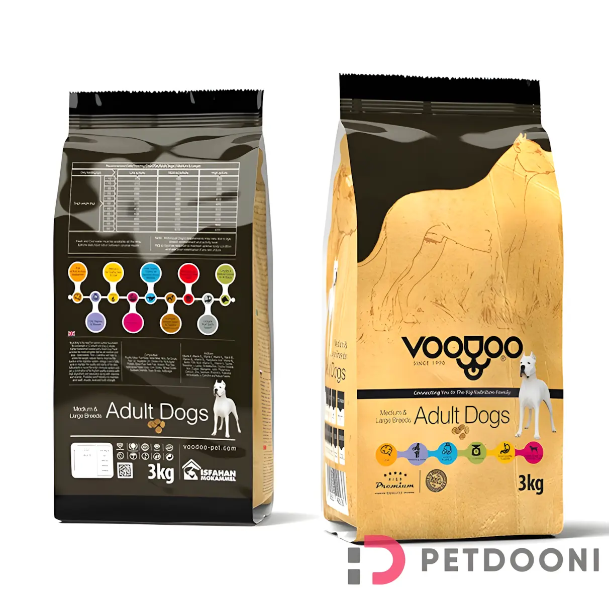 غذای خشک سگ نژاد بزرگ و متوسط وودو وزن ۳ کیلوگرم با ترکیبی غنی از مواد مغذی ضروری، یک رژیم غذایی متعادل و سالم برای سگهای شما فراهم میکند. این محصول شامل:
