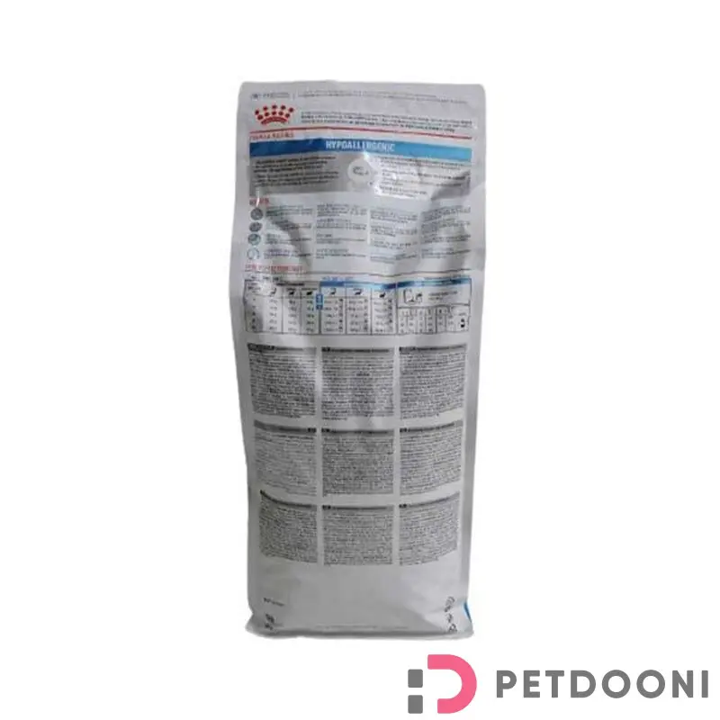 غذای رژیمی مخصوص سگهای دارای حساسیت عدم تحمل غذا شامل برنج به عنوان یک منبع کربوهیدرات قابل هضم سرشار از اسیدهای چرب ضروری مناسب تقویت سد طبیعی پوست دارای اسید چرب امگا 3 برای کمک به سلامت روده دارای پروتئین هیدرولیز شده جهت هضم آسان حاوی مقدار متوسط انرژی جهت کاهش وزن حاوی مقادیر بالای نیاسین، بیوتین و اسید پانتوتنیک جهت کاهش از دست دادن مایعات بدن حاوی مقادیر متوسط از فسفر جهت حفظ عملکرد کلیهی سگهای مسن مورد استفاده برای موارد رشد بیش از حد باکتریها در رودهی کوچک، حذف رژیم، نارسایی پانکراس و بیماریهای التهابی روده فرموله شده زیر نظر متخصصین علم دامپزشکی طعمی لذیذ و خوشمزه کمک به سلامت دهان و دندان دارای سطح مناسب بالانس انرژی تهیه شده از مرغوب ترین مواد اولیه زیر نظر فدراسیون صنایع غذایی حیوانات خانگی اروپا (FEDIAF)