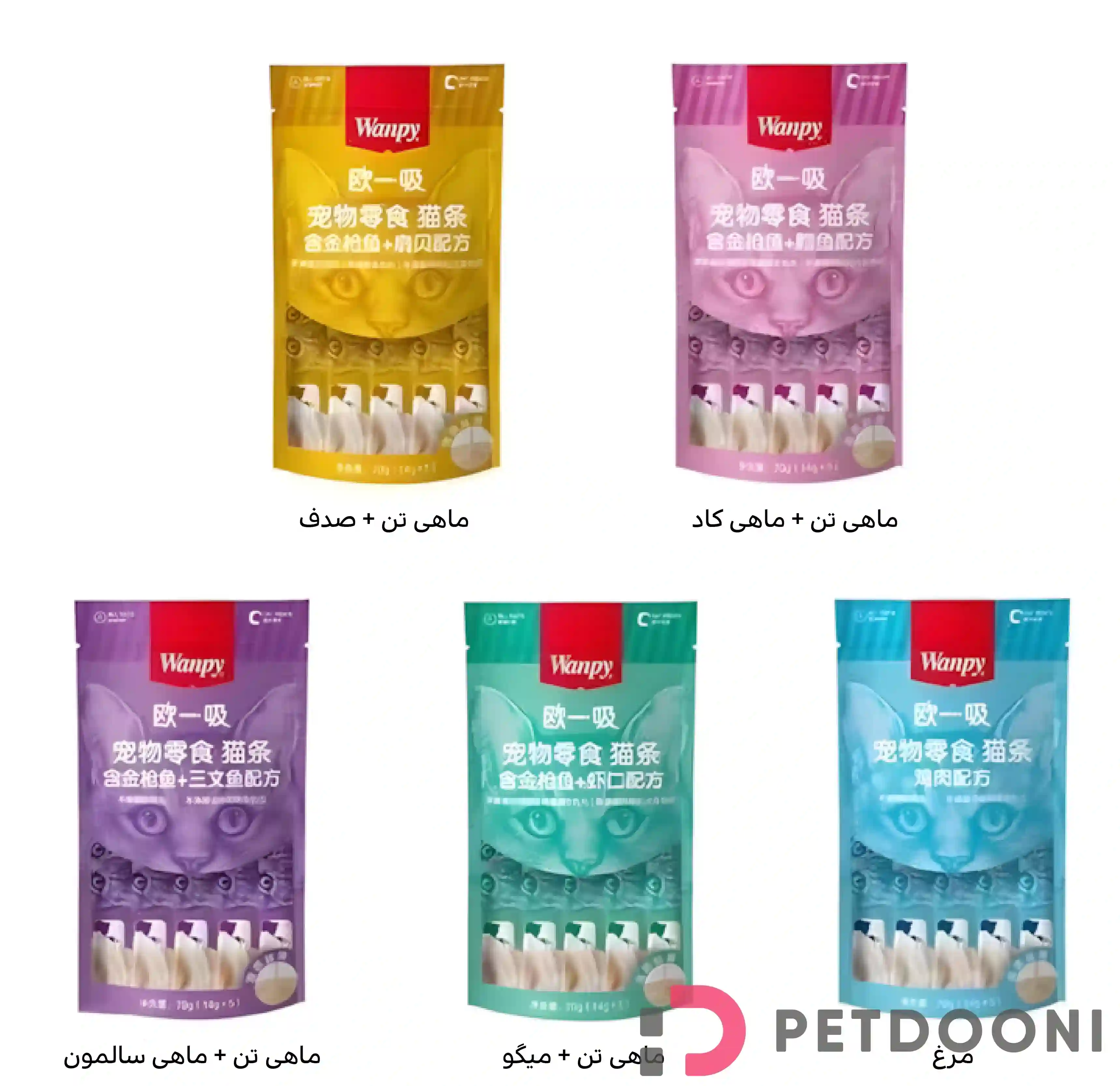 بستنی ونپی برای گربه های تمامی نژاد ها با سن بالای ۳ ماه تولید شده است. حاوی انواع ویتامین هاست و قابلیت هضم بالایی دارد. تشویقی های مناسب علاوه بر نقشی که در تربیت گربه ها دارند، می توانند با تامین مواد مغذی، به حفظ سلامت عمومی آنها نیز کمک کند. همچنین تشویقی هایی تولید شده اند که حاوی انواع ویتامین ها و مواد معدنی بوده و می توانند به خوبی نیازهای بدن گربه ها را تامین کنند. محصولی که در ادامه به شما معرفی می کنیم ساخت چین است و از کیفیتی بسیار بالا برخوردار است. این بستنی به خوبی مورد استقبال گربه ها قرار می گیرد و لیسیدن آن توسط آنها به راحتی انجام می شود. برای تمامی گربه ها از نژادهای مختلف از سن ۳ ماهگی به بعد قابل استفاده است. این محصول هضم آسانی دارد و به همین دلیل سازگاری بسیار خوبی با دستگاه گوارش خواهد داشت. در ترکیب این محصول ویتامین آ، ویتامین های گروه ب شامل ب۱، ب۳، ب۵، ویتامین د و ویتامین ای وجود دارند. همچنین برای حفظ کیفیت و سلامت پوست و مو از اسیدهای چرب ضروری شامل EPA، DHA و DPA در آن استفاده شده است. این بستنی همچنین موجب تقویت سیستم ایمنی گربه ها می شود.