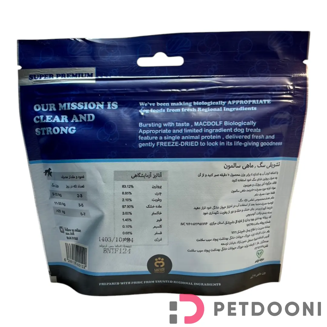 تشویقی فریز دراید سگ مک دولف یک میان وعده و پاداش لذیذ و خوشمزه برای دوست وفادارتان است. اگر از یک سگ نگهداری میکنید به احتمال زیاد اسم تشویقی به گوشتان خورده است. تشویقی به وعده کوچکی گفته میشود که به عنوان پاداش برای انجام یک رفتار مطلوب به سگ داده میشود. سگ ها عاشق تشویقی هستند و از خوردن آن لذت میبرند، دلایل بسیاری وجود دارد که صاحبان پت از تشویقی استفاده میکنند. خوردن تشویقی ها مقداری برای سگ ها زمان بر است و مواقعی که صاحب پت در منزل نیست میتوان با دادن تشویقی های جویدنی سگ را ساعت های طولانی سرگرم کرد. یکی از دلایل مهم دیگر که باعث استفاده از تشویقی میشود، از بین بردن جرم و پلای های دندان است، تشویقی های سخت و جویدنی جدا از اینکه باعث سرگرم شدن سگ میشود، جرم و پلاک های دندان را از بین میبرد و به سلامت دندان و لثه ها کمک میکند. تشویقی ها غریزه جویدنی سگ را تسکین میدهد، سگ ها به صورت غریزی عاشق جویدن هستند و دادن تشویقی های جویدنی باعث شاداب و خوشحالی سگ ها میشود. از این تشویقی فریز دراید سگ مک دولف میتوانید در کنار غذای خشک سرو کنید، یا برای آموزش و تشویقی استفاده کنید.ایجاد تنوع غذایی و دادن تشویقی های گوناگون به سگ ها باعث میشود، تا تمام نیاز های غذایی و تغذیه ای بدن کاملا تامین بشود و دیگر پت کمبود ویتامین و املاح معدنی نداشته باشد و به تقویت سلامت عمومی کمک شایانی میکند. وقتی که سگ پس از یادگیری یک آموزش تشویقی دریافت میکند، انگیزش برای یادگیری افزایش پیدا میکند. تشویقی های مکدولف به جدید ترین و مدرن ترین روش تولید شدند. محصولات فریزدراید بدلیل خشک شدن به روش انجمادی ارزش غذایی بسیار بالایی دارند، و عطر و طعمشون حفظ شده. حتما آب تازه و پاکیزه در اختیار سگ قرار دهید. تشویقی فریز دراید سگ مک دولف کاملا تازه و بدون مواد نگهدارنده است.