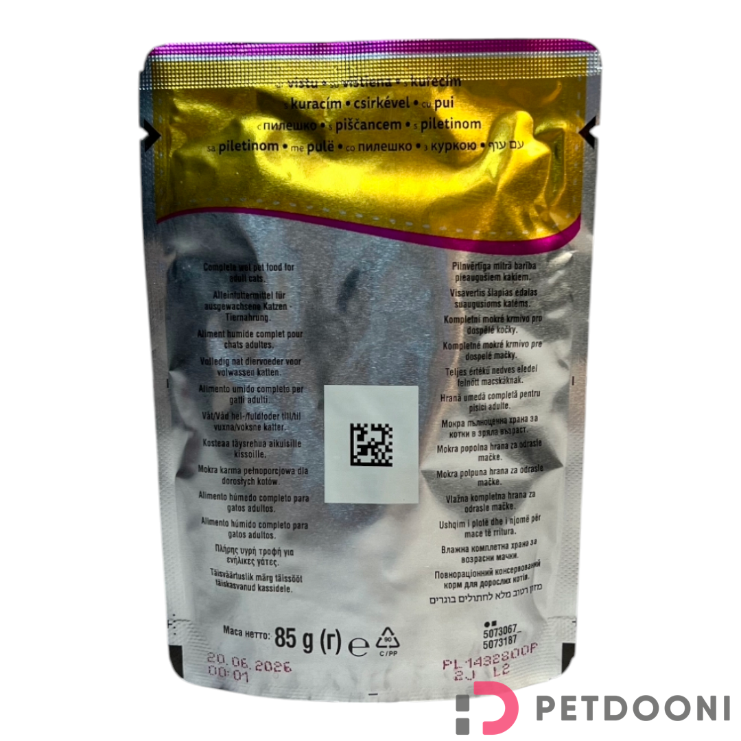 پوچ گربه ویسکاس با طعم مرغ در ژله، یک محصول بسیار مناسب برای گربههای بالغ است که توسط برند معتبر ویسکاس تولید میشود. این محصول دارای ترکیبی از مواد مغذی متعادل و کافی است که به گربهها کمک میکند تا سلامتی و رشد صحیح داشته باشند. یکی از ویژگیهای این پوچ گربه ویسکاس طعم مرغ آن است که بهطور معمول گربهها این طعم را دوست دارند. این طعم ترکیبی باعث میشود تا گربهها با اشتها این غذا را بخورند و از آن لذت ببرند. پوچ گربه ویسکاس با طعم مرغ، حاوی مواد مغذی است که گربهها به آنها نیاز دارند. این محصول شامل مواد معدنی، آمینو اسیدهای ضروری و ویتامینهای مهمی است که به سلامتی و رشد صحیح گربهها کمک میکنند. مواد معدنی شامل کلسیم، فسفر، آهن و روی است که برای استحکام استخوانها و سیستم عصبی مناسب هستند. همچنین، آمینو اسیدهای ضروری مانند تائورین و ویتامینهای مهم مانند ویتامین A، D، E و B نیز در این محصول وجود دارند.