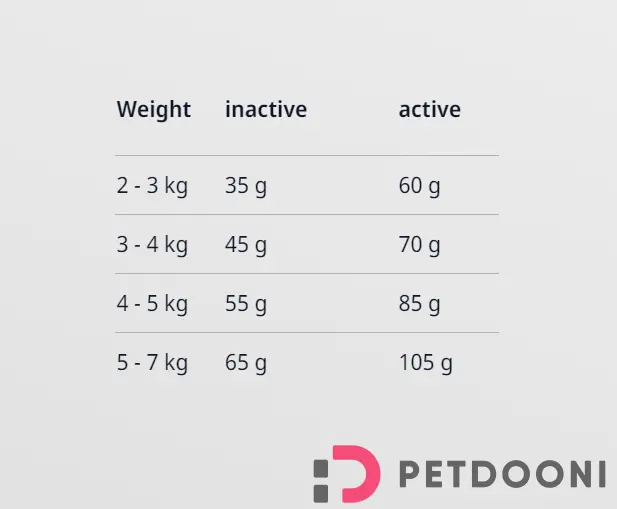 این مقادیر برای گربههای بالغ با سطح فعالیت متوسط در نظر گرفته شدهاند. برای گربههای باردار، شیرده یا دارای شرایط خاص بهتر است با دامپزشک مشورت کنید.