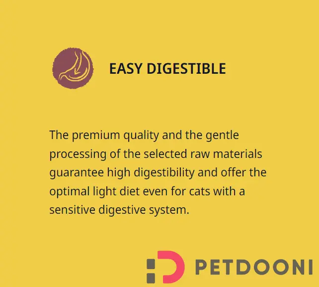 با توجه به حساسیت دستگاه گوارش بچه گربهها، این محصول با استفاده از فیبرهای ملایم و ترکیبات زودهضم فرموله شده تا فرآیند گوارش به راحتی انجام شود و مشکلاتی مانند نفخ یا اسهال به حداقل برسد.