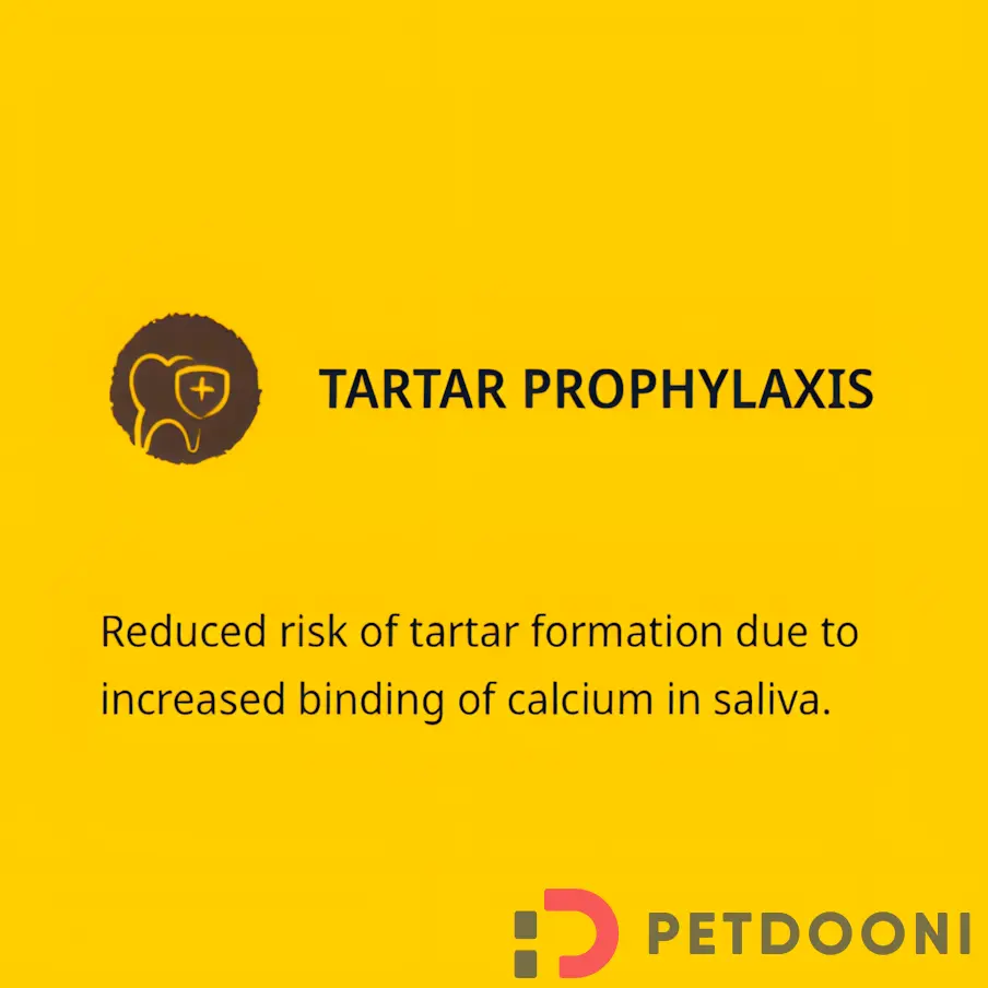 فرمول ویژه غذا باعث اتصال کلسیم در بزاق شده و از تشکیل پلاک و جرم دندان در گربه جلوگیری میکند.