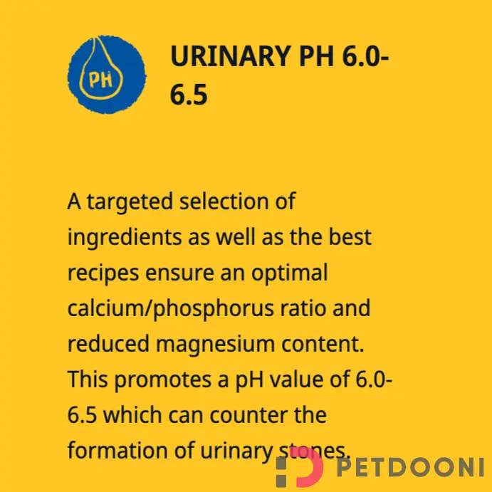 تعادل دقیق و کنترلشدهی مواد معدنی در این محصول به تنظیم سطح pH ادرار کمک میکند؛ در نتیجه احتمال تشکیل سنگهای ادراری کاهش یافته و سلامت مجاری ادراری گربه حفظ میشود.