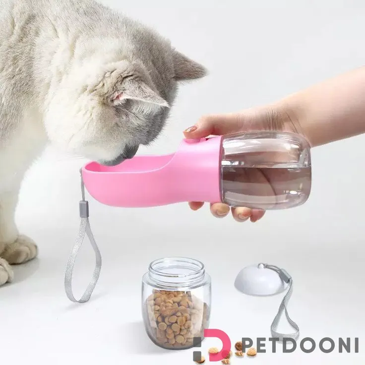 قمقمه همراه و مسافرتی سگ و گربه با قابلیت برگشت آب به داخل قمقمه و همچنین دارای مخزن غذا و قفل جهت جلوگیری از نشت آب و مناسب برای مسافرت وپارک و پیاده روی و… است. مناسب زمان هایی که به پیاده روی میروید یا به مسافرت و نیاز به همراه داشتن آب برای پت دلبندتان می باشید. این قمقمه بسیار سبک و به راحتی قابل حمل می باشد و با فشار دادن تنها یک دکمه آب تازه و تمیز را در اختیار پت عزیزتان قرار می دهید.