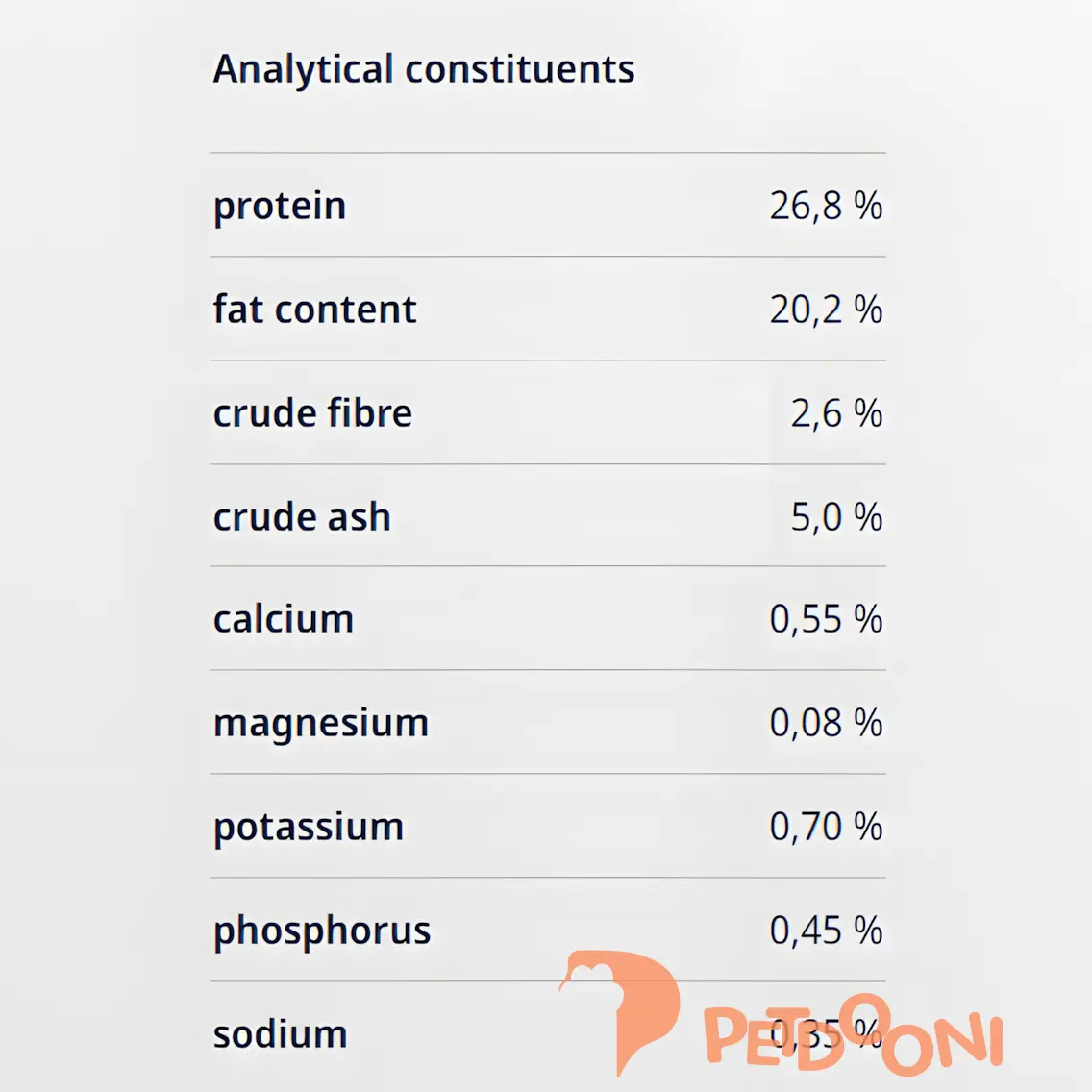 • مخصوص گربههای بالغ دارای مشکلات کلیوی • کاهش فشار دفع مواد متابولیک بر کلیه با پروتئین و فسفر کم • سرشار از ویتامینهای گروه B برای جبران کاهش آن در بیماریهای کلیوی • حاوی گزنه مناسب برای افزایش حجم ادرار و کاهش pH محیط سیستم ادراری • حاوی روغن سالمون برای تامین امگا 3 و اسیدهای چرب • ضد التهاب و تقویت کننده سیستم ایمنی بدن • حاوی کالری کم و متعادل مناسب برای تناسب اندام • بدون رنگهای مصنوعی، طعم دهندهها و مواد نگهدارنده
