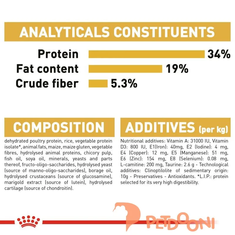 غذای خشک گربه بریتیش ادالت رویال کنین (Royal Canin Cat British Shorthair Adult) وزن 2 کیلوگرم یک غذای خشک ایدهآل است که برای پاسخگویی به نیازهای غذایی بینظیر این نژاد، با داشتن پروتئین بهینه متعادل و سطح بالای L- کارنیتین، به تقویت عضلات کمک میکند. این غذا همچنین حاوی مواد مغذی حیاتی مانند گلوکوزامین و کندرویتین است که به سالم نگه داشتن استخوانها و مفاصل و همچنین اطمینان از رشد خوب بدن کمک بسزایی میکند. از آنجا که گربه بریتیش میتواند به صورت ژنتیکی در برخی از بیماریهای قلبی مانند کاردیومیوپاتی هیپرتروفیک قرار بگیرد. غذای خشک گربه بریتیش ادالت رویال کنین بزرگسالان دارای بالانس خوبی از تورین، آنتیاکسیدانها و اسیدهای چرب مهم امگا 3 است که همگی میتوانند به حمایت از سلامت قلب و اطمینان از عملکرد قوی قلب کمک کند. در پت دونی محصولات رویال کنین تحت کنترل دقیق دوکتر دامپزشک قرار میگیرند، تا اطمینان حاصل شود که گربه شما یک غذای باکیفیت عالی و متناسب با نیازهای غذایی فردی و سبک زندگی خاص دریافت میکند. میزان پروتئین در غذای خشک گربه بریتیش ادالت رویال کنین متناسب با بدن عضلهای گربههای بریتیش در نظر گرفته شده و درصد بالایی از غذا را تشکیل میدهد. همچنین حاوی ال-کارنیتین است که تاثیر بسزایی در متابولیسم چربیها دارد. اسید های چرب امگا 3 EPA و DHA موجود در این غذا، علاوه بر تاثیر در زیبایی پوست و مو، به حفظ سلامت استخوانها نیز کمک میکند. میزان متعادل مواد معدنی و فورمولاسیون آن نیز به حفظ سلامت دستگاه قلبی و عروقی و همچنین دستگاه ادراری کمک میکند. اندازه دانههای غذا متناسب با دهان این گربه است و کمی حالت خمیده دارد تا بهتر جویده شود. این غذا حاوی پروتئین سازگار با نیازهای گربه شما میباشد. با این غذا توده عظلانی قوی پیدا کرده و باعث عملکرد صحیح قلب میشود. همچنین غذای خشک گربه بالغ بریتیش برند رویال کنین غنی از کلسیم است و برای جلوگیری از تارتار دندانی بسیار حائز اهمیت است.