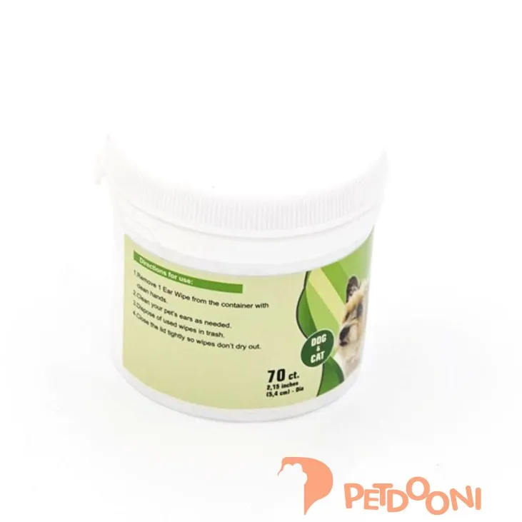 1. با دستان تمیز یک عدد دستمال را از بسته بندی خارج کنید. 2. به مقدار لازم گوش پت خود را تمیز نمائید.