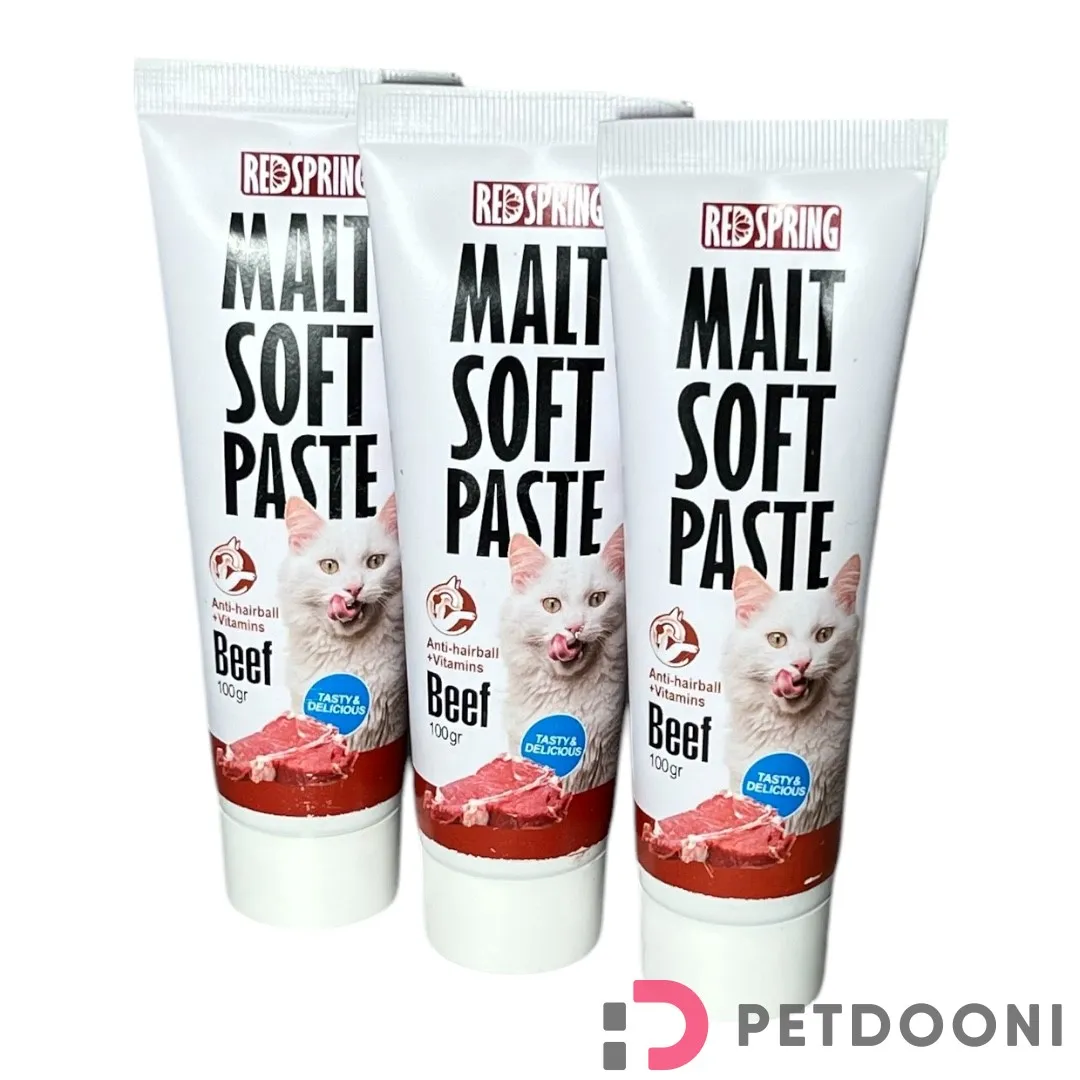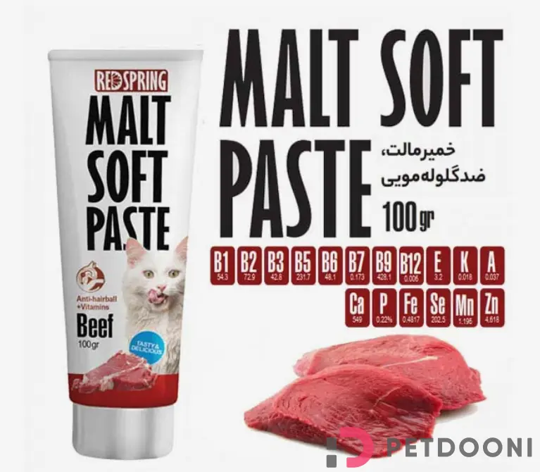 • عصاره مالت و خمیر مولتیویتامین غنی شده مخصوص گربه • ضد گلوله مویی به دلیل وجود سلولز در مالت • حاوی طعم دهنده طبیعی گوشت بدون افزودنی • تقویت کننده سیستم گوارش و روده • حاوی ویتامین های گروه B • حاوی کلسیم مناسب برای حفظ سلامت استخوانها • دارای ویتامین های K، E، A