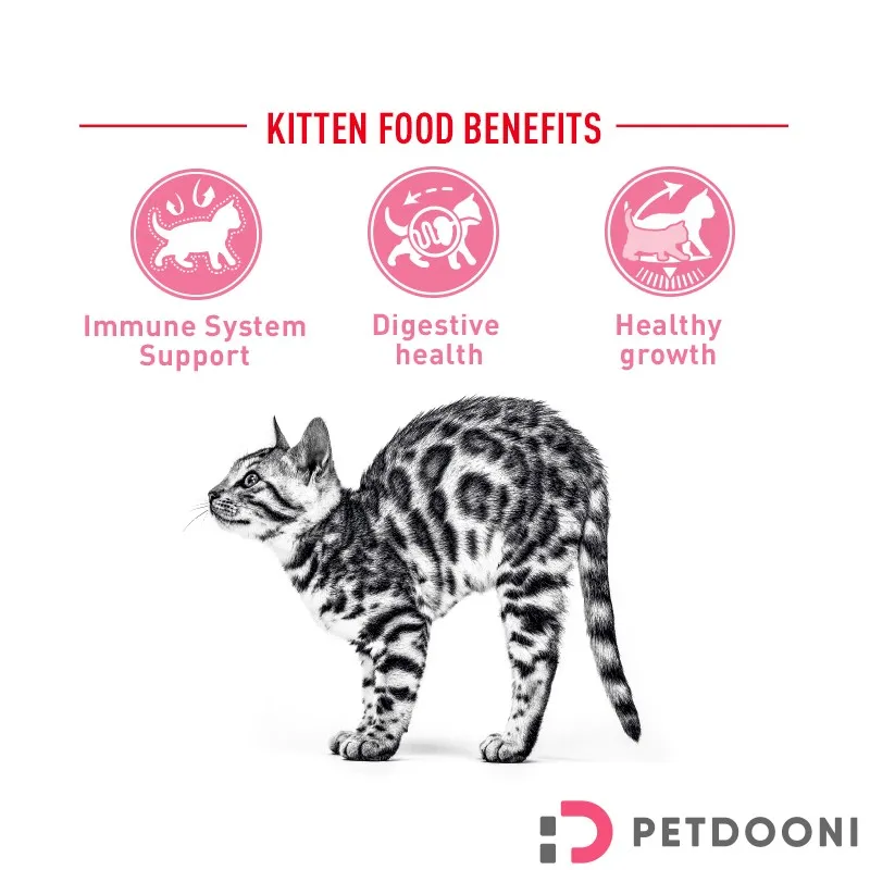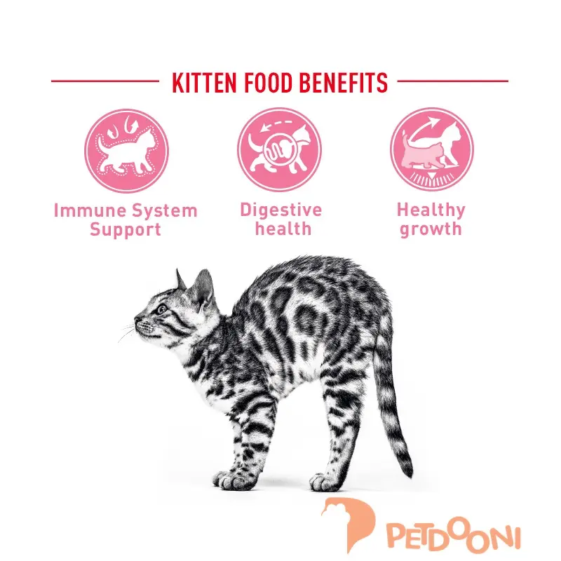 پروتئینهای باکیفیت موجود در Royal Canin Kitten 2kg به توسعه عضلات کمک میکند.