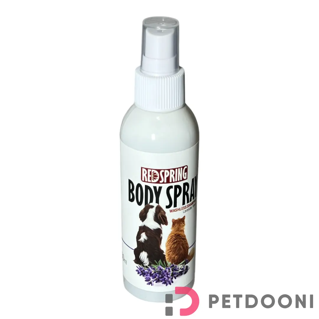 اسپرى تمیز کننده بدن بدون نیاز به آب کشی (شامپوى بدون نیاز به آبکشى) بر پایه نانو نقره (مخصوص سگ و گربه) فرموله شده براى ضد عفونى کردن و تمیز کردن بدن حیوانات خانگى با قابلیت تمیزکنندگی بالا محلول تمیز کننده بدن نانو نقره Redspring با طیف ضد میکروبی گسترده، موثر بر انواع باکترى هاى گرم مثبت و منفی، مایکوباکتریوم ها، قارچها، انگل ها و ویروس هاى پوشش دار و بدون پوشش می باشد. همچنین با قابلیت چربی زدایی از سطح پوست و موی حیوان، باعث تمیزی سریع و از بین رفتن بوى بد بدن می شود.