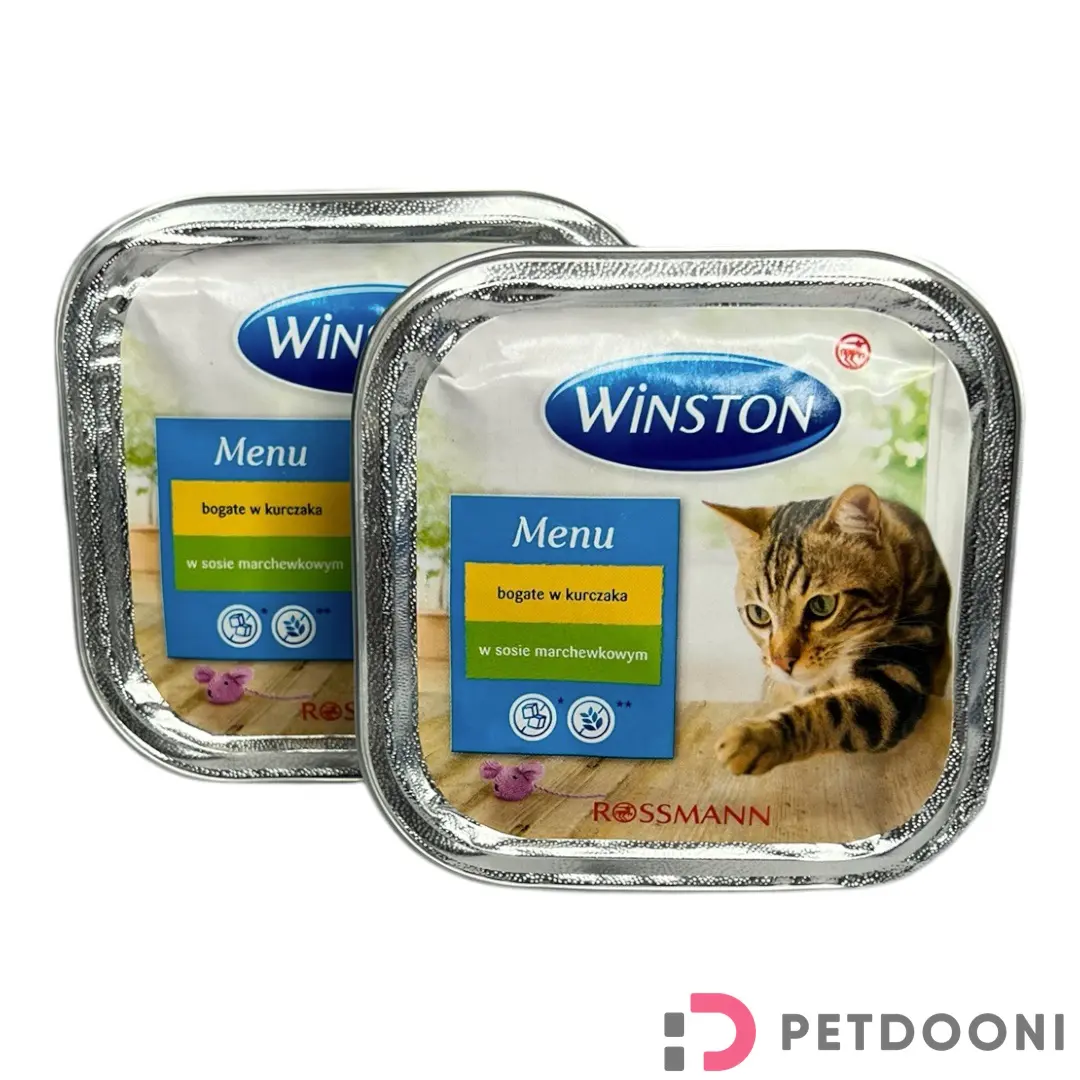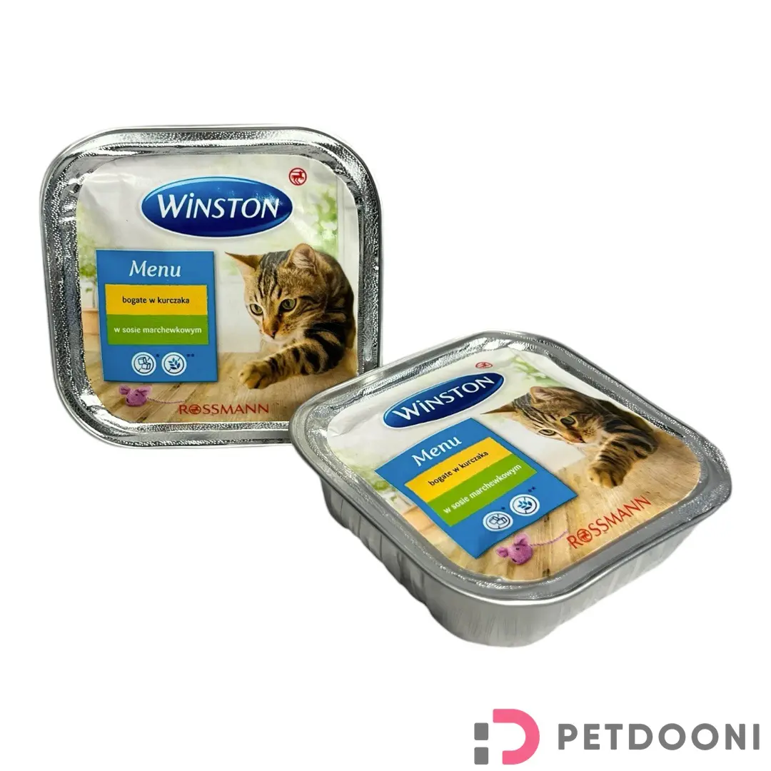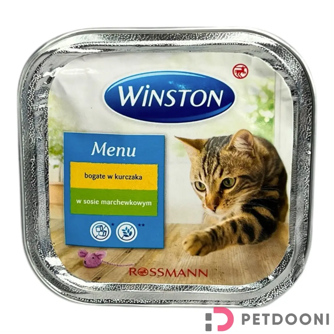 غذای کاسه ای گربه وینستون مرغ در سس هویج یک غذای کامل و فرموله شده برای برآورده کردن تمامی نیازهای گربه های بالغ و حتی گربه های کم اشتها و بد غذا در بافت حالت پته یا یکنواخت شده تهیه می شود. طعم این غذای بی نظیر گوشت مرغ در سس هویج بسیار لذیذ و خوشمزه که باعث تقویت سیستم ایمنی بدن، حفظ بافت عضلات و استخوان ها و حفظ سلامت پوست و مو گربه شما می شود.