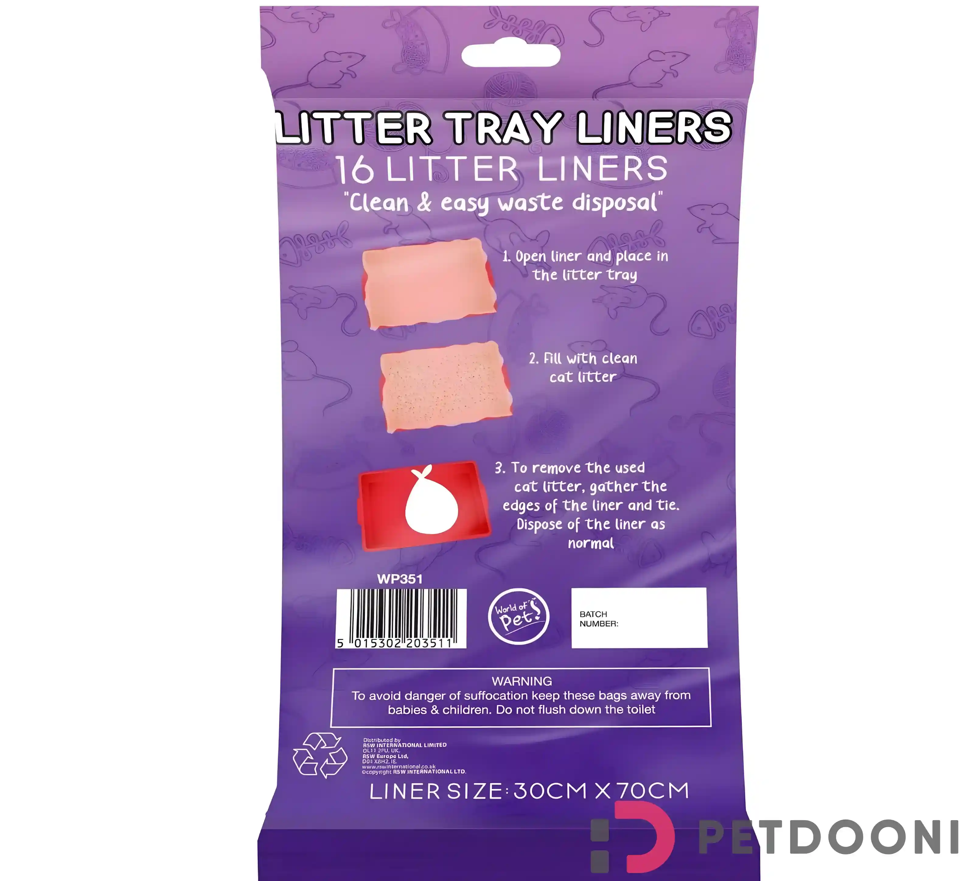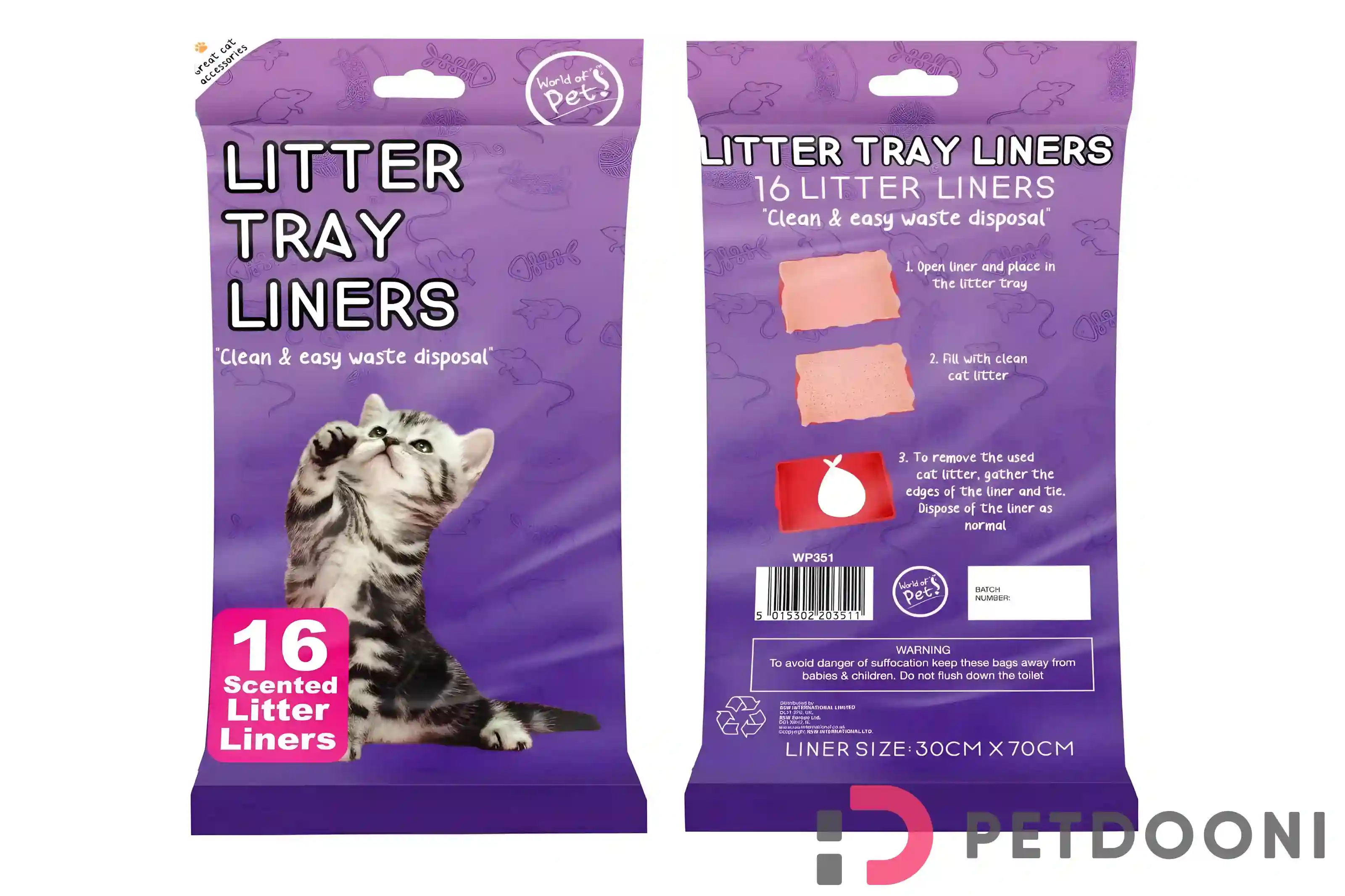 لاینر معطر خاک بستر گربه World of Pets به گونه ای طراحی شده که در بیشتر ظرف های خاک گربه موجود در بازار جای گیرد ، این لاینر همچون یک کیسه زباله مانع تماس خاک گربه و فضولات با ظرف شما می گردد و شما می توانید به راحتی تمامی خاک موجود در ظرف را جمع کرده و مانع پخش آلودگی به محیط زندگی خود گردید. استفاده راحت و سریع و تمیز نگه داشتن ظرف خاک پشمالوی شما از مهم ترین ویژگی های این محصول است.